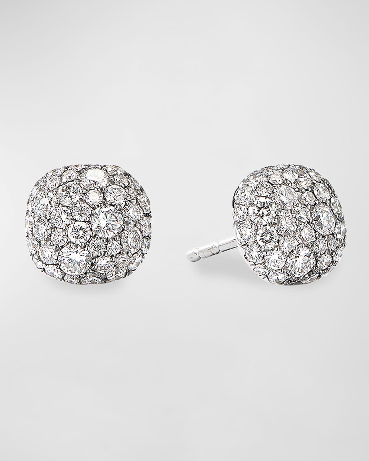 - David Yurman earrings from the Pave Collection. - Polished 18-karat white gold posts and hardware. - Cushion-shaped studs with white diamond pave. - 0.80 total diamond carat weight. - Post backs for pierced ears. - Approx. 0.3"H (8mm). - Imported.