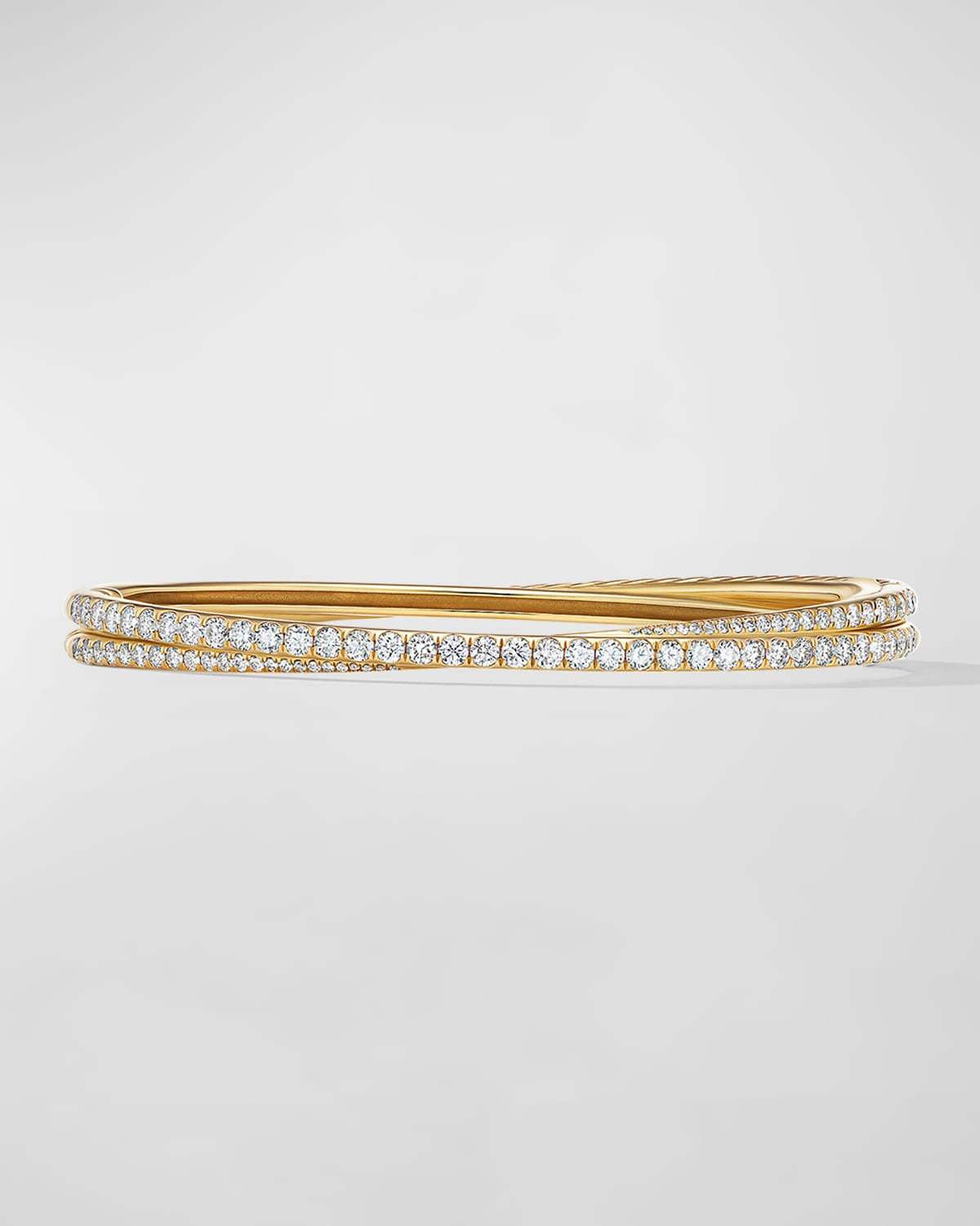 - David Yurman bracelet - Approx. 5.5mm - 18-karat yellow gold - Pav white diamonds - 1.97 total carat weight - Push clasp- - Imported