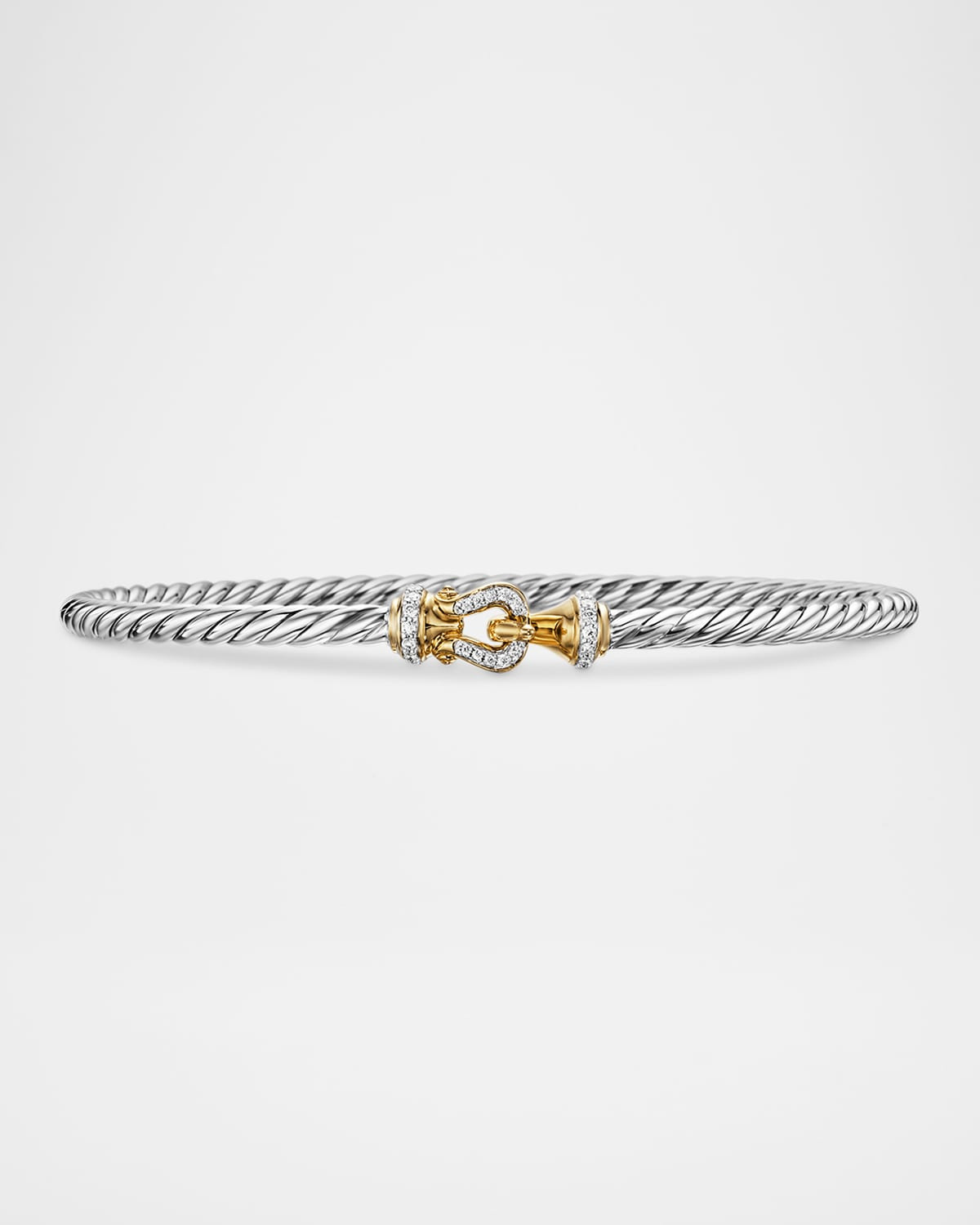 David Yurman bracelet Approx. 3mm Sterling silver with 18karat yellow gold Pave diamonds; 0.10 total carat weight Hook closure Made in USA