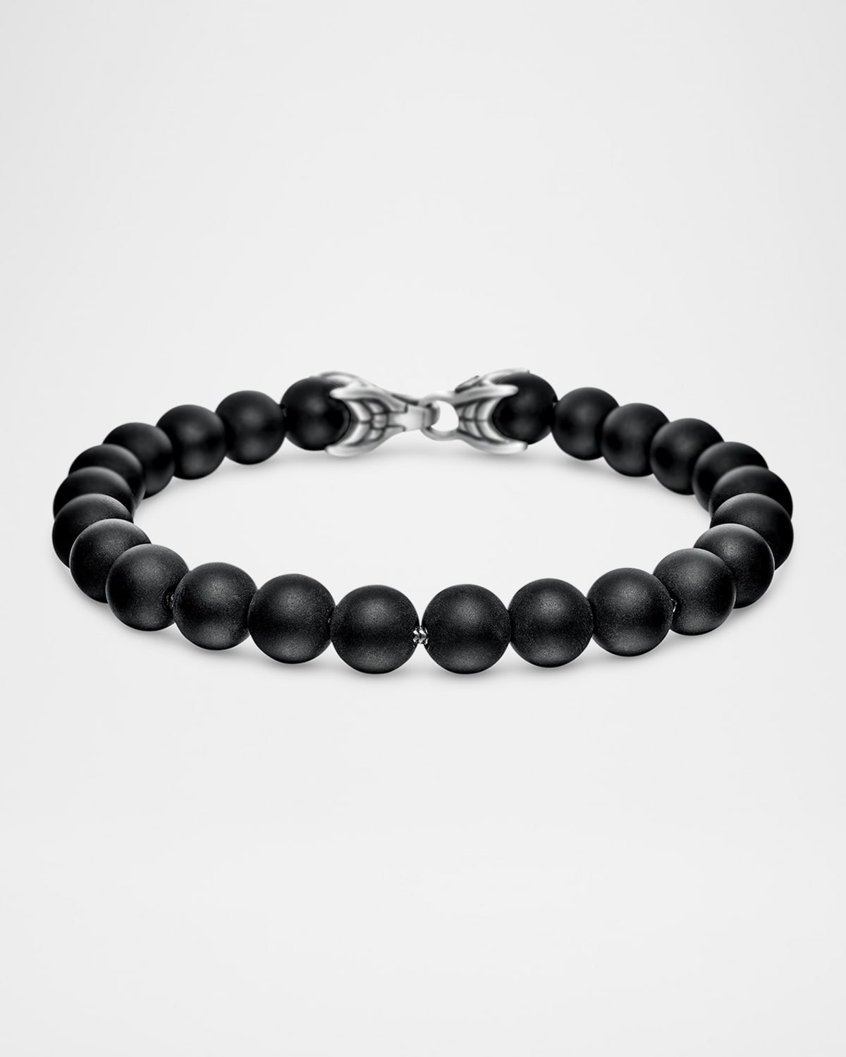 - From the Spiritual Bead Collection. - Sterling silver. - 8 1/2"L. - Cabochon Black Onyx beads. - Bracelet, 8mm. - Lobster clasp. - Care Instructions: - Use the provided polishing cloth to gently wipe this item clean, then remove any remaining tarnish with mild diluted soap. Rinse with warm water, dry with a clean towel and store it in its jewelry pouch. - Please note: - Styles featuring meteorite should not be exposed to water.
