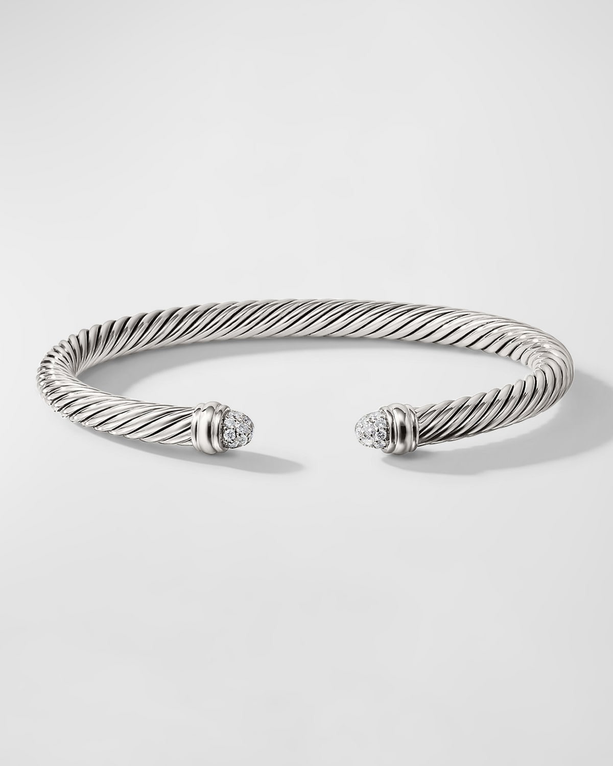 Sterling silver Pave diamonds, 0.26 total carat weight Cable, 5mm wide