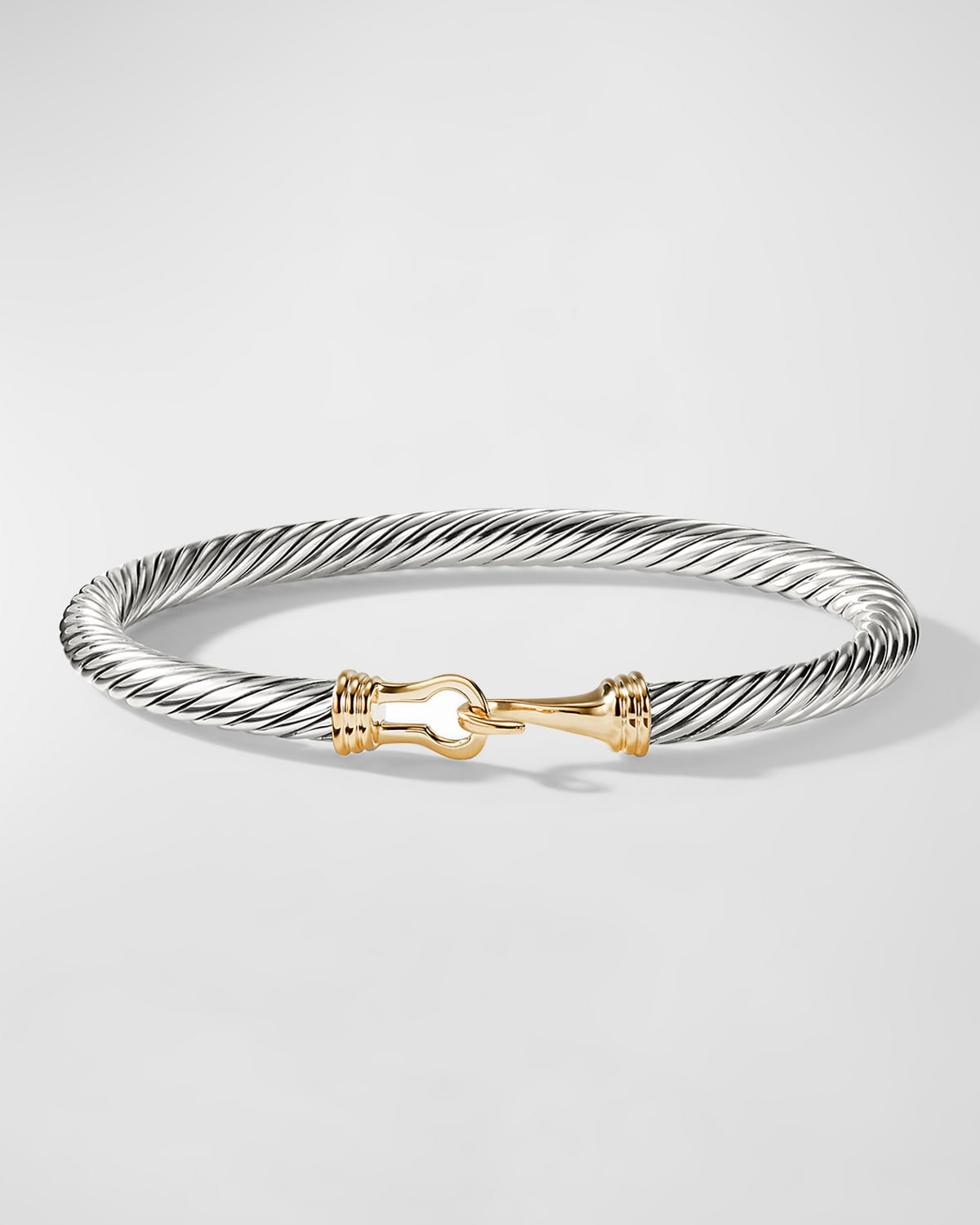 Cable Buckle Bracelet with 14K Gold in Silver, 5mm