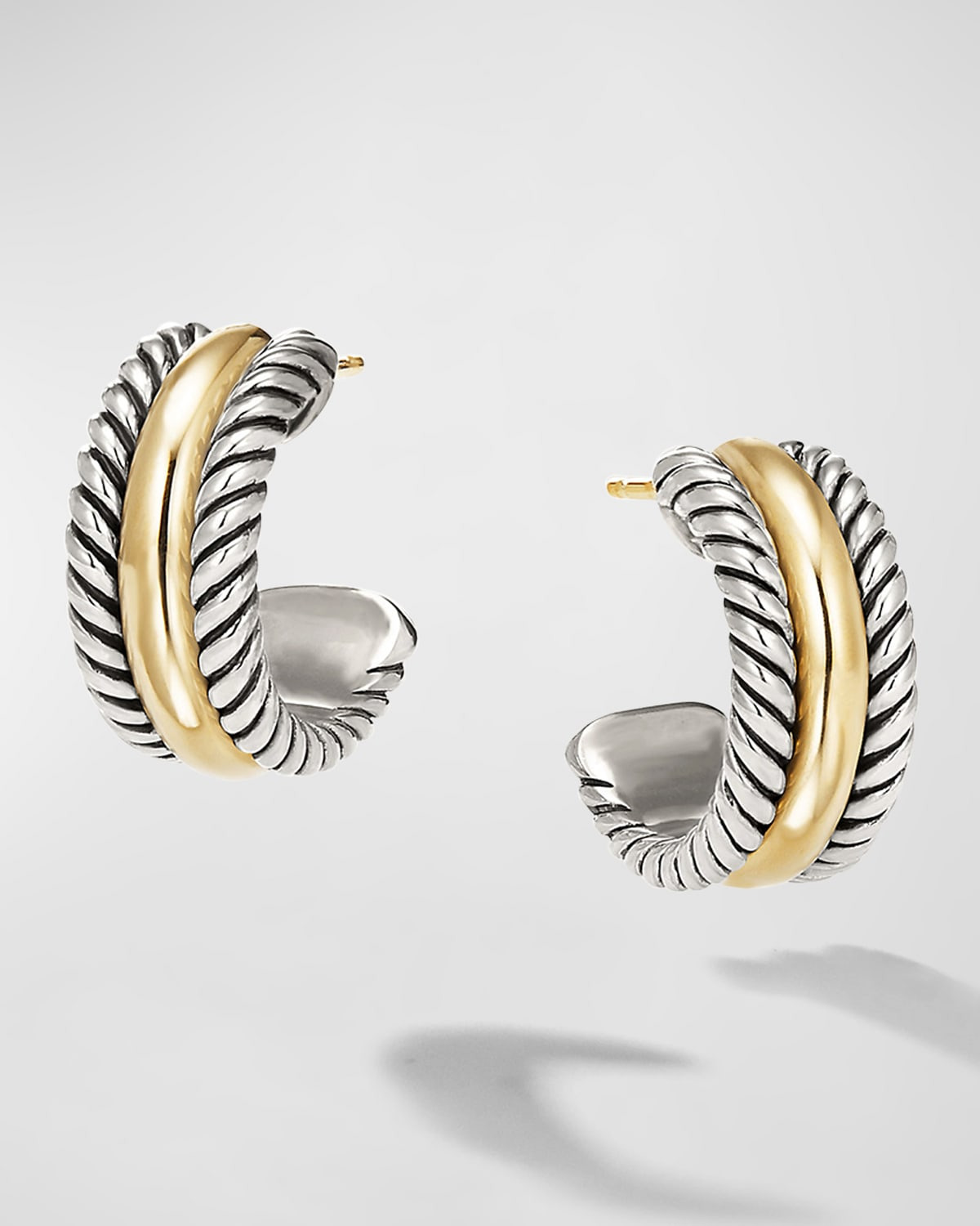 - The DY Crossover® Collection explores the rhythmic weaving of line to create form and movement. Using a dynamic range of smooth and cabled cords, the individual strands are meticulously entwined. - Sterling silver and 14-karat yellow gold - Earring, 16 x 7mm - Care Instructions: - Use the provided polishing cloth to gently wipe this item clean, then remove any remaining tarnish with mild diluted soap. Rinse with warm water, dry with a clean towel and store it in its jewelry pouch.