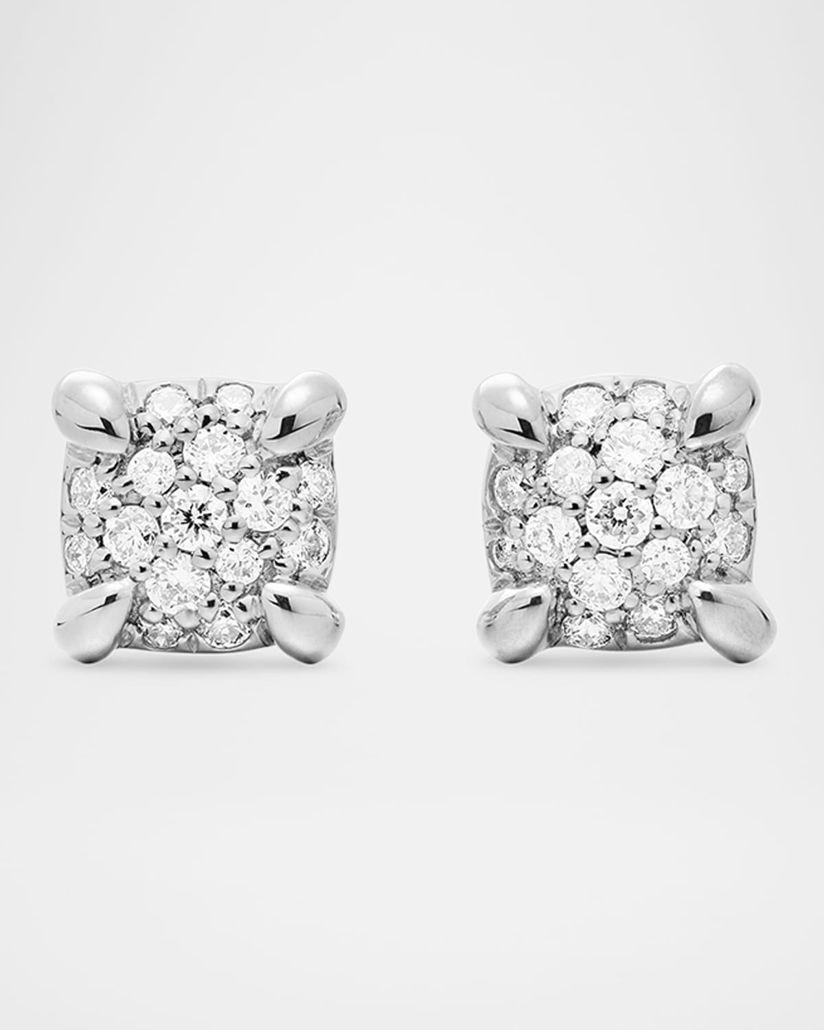 - Chatelaine stud earrings by David Yurman. - Polished 18-karat white gold hardware. - Pave-set diamonds with four prongs. - 0.11 total diamond carat weight. - Post backs for pierced ears. - Approx. 5mm wide. - Imported.