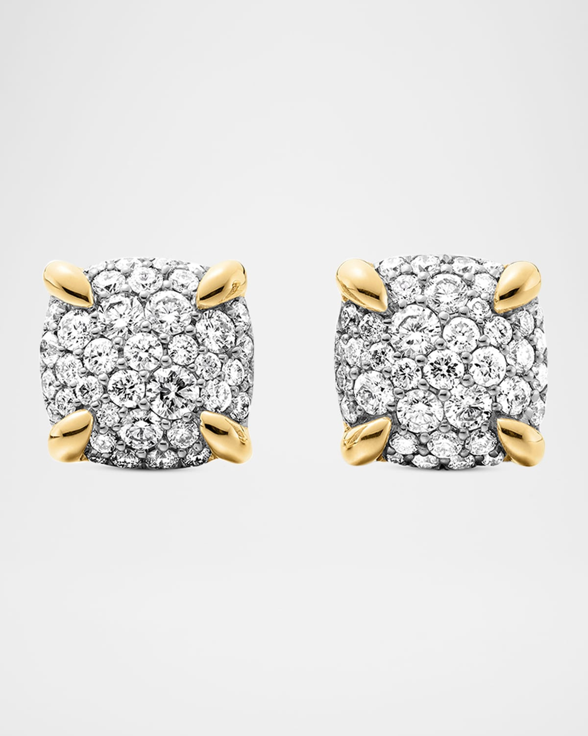 - David Yurman earrings from the Chatelaine Collection. - Polished 18-karat yellow gold hardware and settings. - Prong-set white diamond pave as cushions. - 0.59 total diamond carat weight. - Post backs for pierced ears. - Approx. 7mm studs. - Imported.