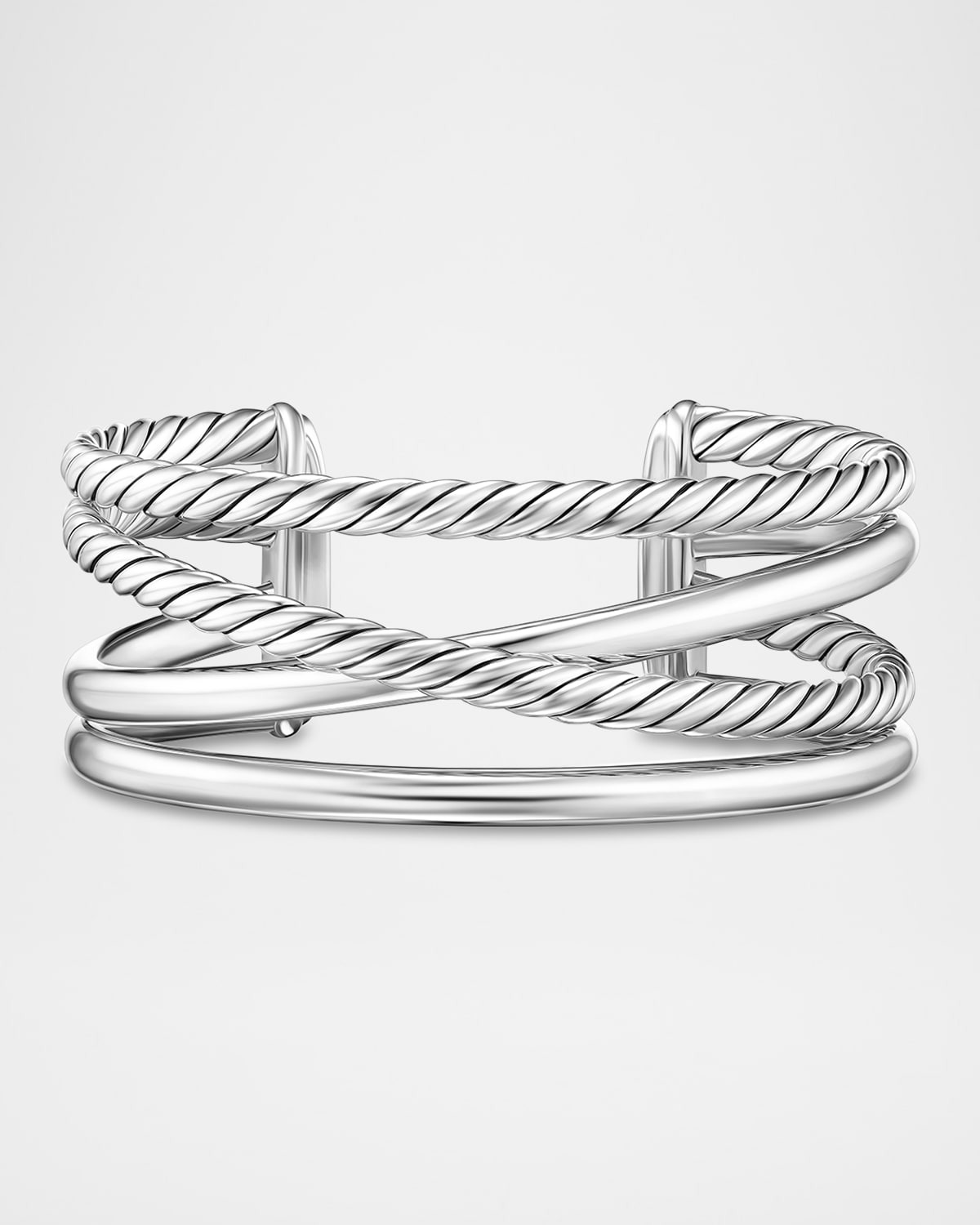 Crossover 5 Row Cuff Bracelet in Silver, 25mm