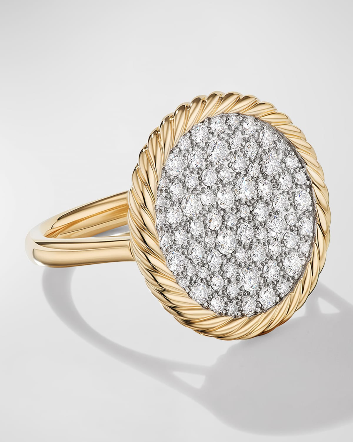 - Elements Collection - 18k yellow gold - Pav diamonds, 0.92 total carat weight - Ring, 18mm - Care Instructions: - METAL: Use the white side of the provided David Yurman polishing cloth to gently wipe clean, then remove any remaining tarnish with mild diluted soap. Rinse with warm water and dry thoroughly before storing the design in its jewelry pouch. Do not use abrasive cleaners, steamers or ultrasonic machines. - GEMSTONE: Use a soft cloth to gently wipe clean, then remove any remaining impurities with mild diluted soap. Rinse with warm water and dry thoroughly before storing in the provided jewelry pouch.