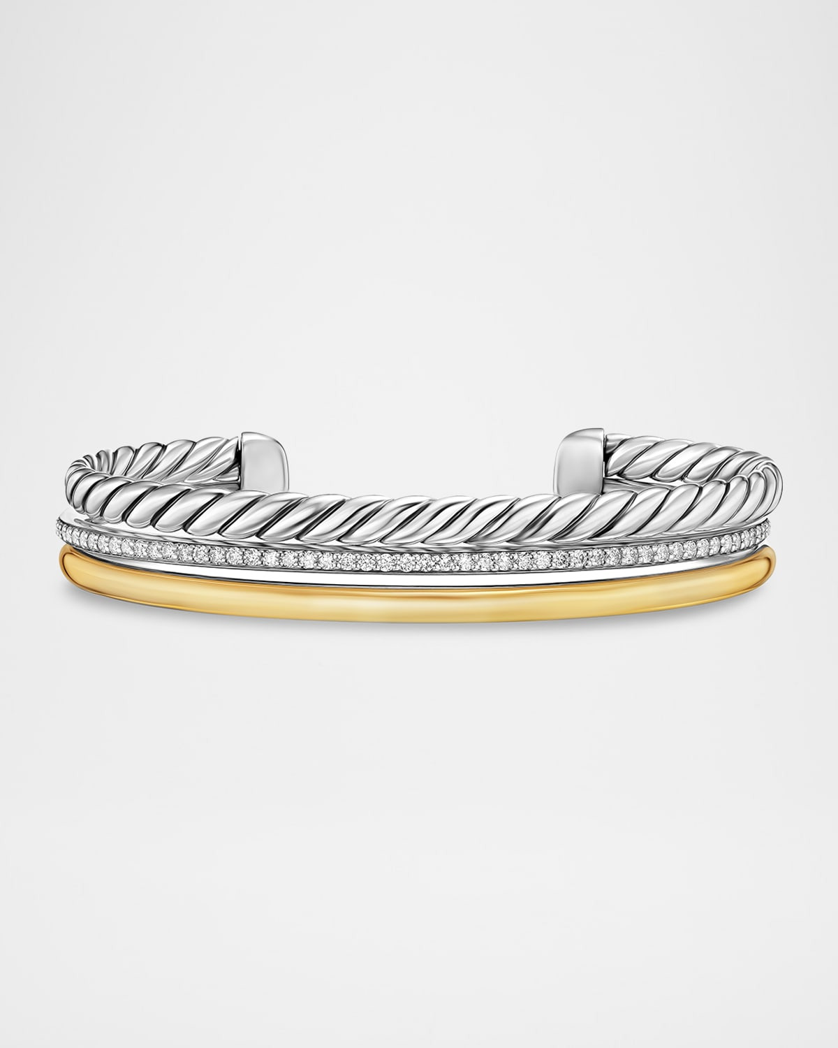 DY Mercer 3 Row Bracelet with Diamonds in Silver and 18K Gold, 10mm