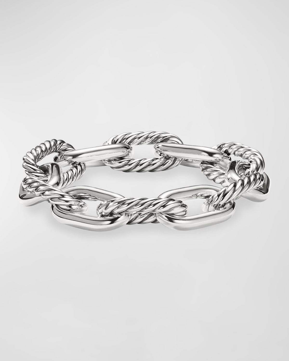 Madison large link bracelet by David Yurman. Sterling silver polished and cablemotif links. Approx. 8"L x 0.5"W, 13.5mm. Integrated cablepush clasp. Imported.
