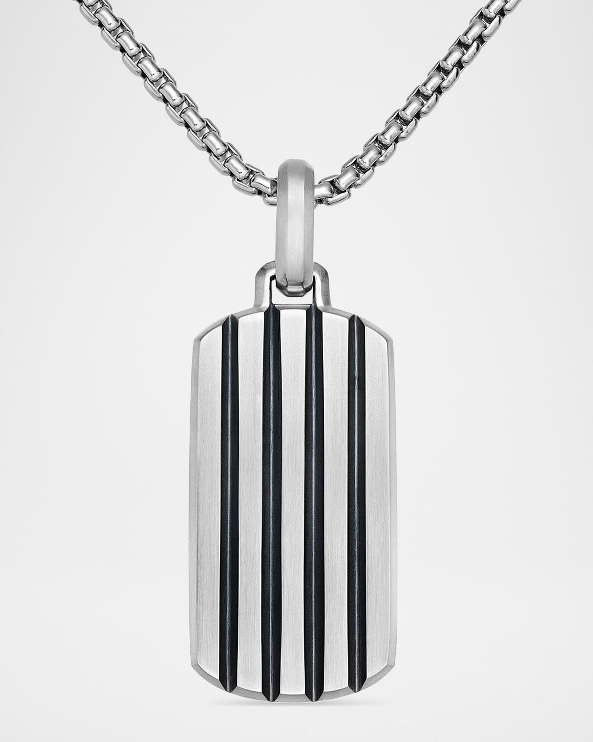 - Beveled dog tag enhancer from the David Yurman Streamline%26reg; Collection. - Sterling silver. - Approx. 1.4" (35mm). - Imported. - Please note: - tag only; chain sold separately. - Shop David Yurman Men's Necklaces & Chains - Care Instructions: - Use the provided polishing cloth to gently wipe this item clean, then remove any remaining tarnish with mild diluted soap. Rinse with warm water, dry with a clean towel and store it in its jewelry pouch. - Please note: - Styles featuring meteorite should not be exposed to water.