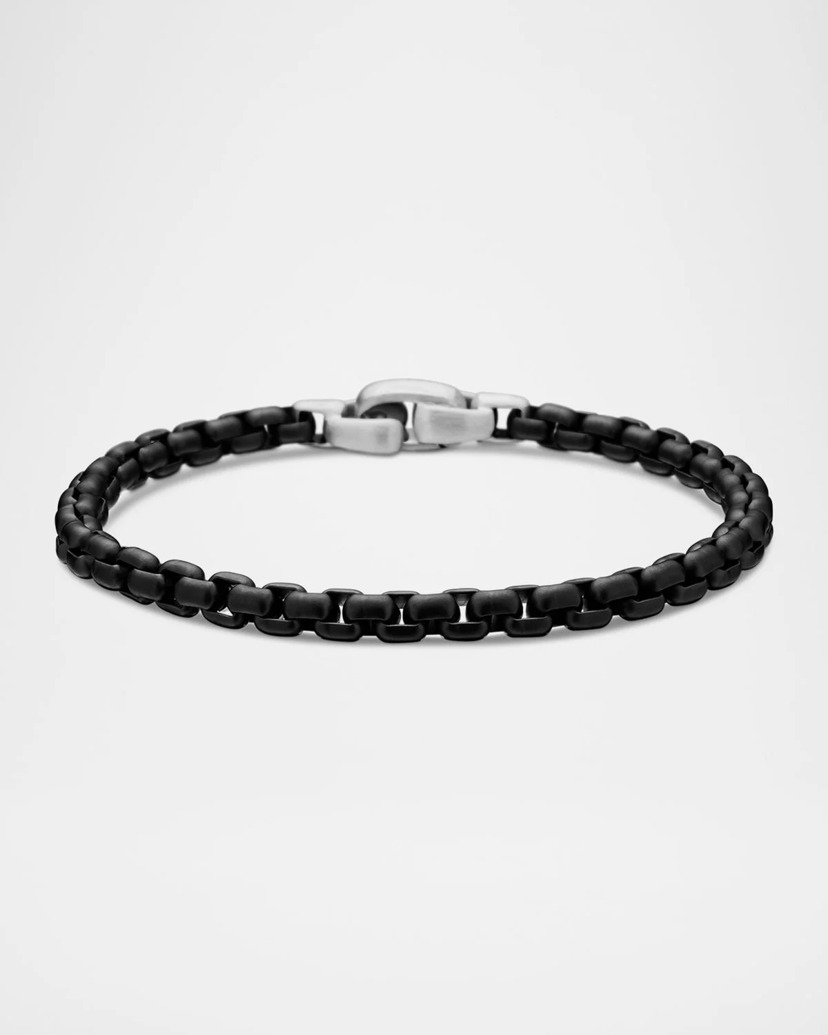 • David Yurman 5mm box chain bracelet. • Stainless steel and darkened sterling silver • Lobster clasp • Imported Use the provided polishing cloth to gently wipe this item clean, then remove any remaining tarnish with mild diluted soap. Rinse with warm water, dry with a clean towel and store it in its jewelry pouch. Online Inquiries: NMS21_N4GYB Store Inquiries: #196494