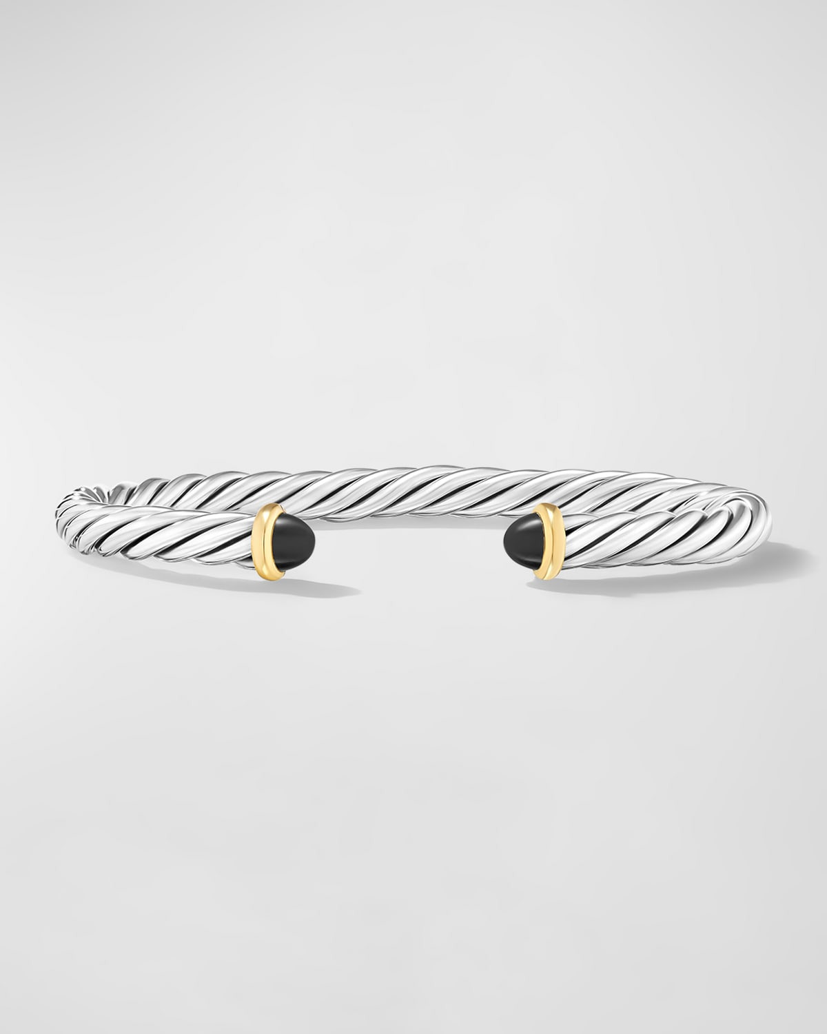 Men's Cable Flex Cuff Bracelet with Gemstone and 14K Gold in Silver, 6mm