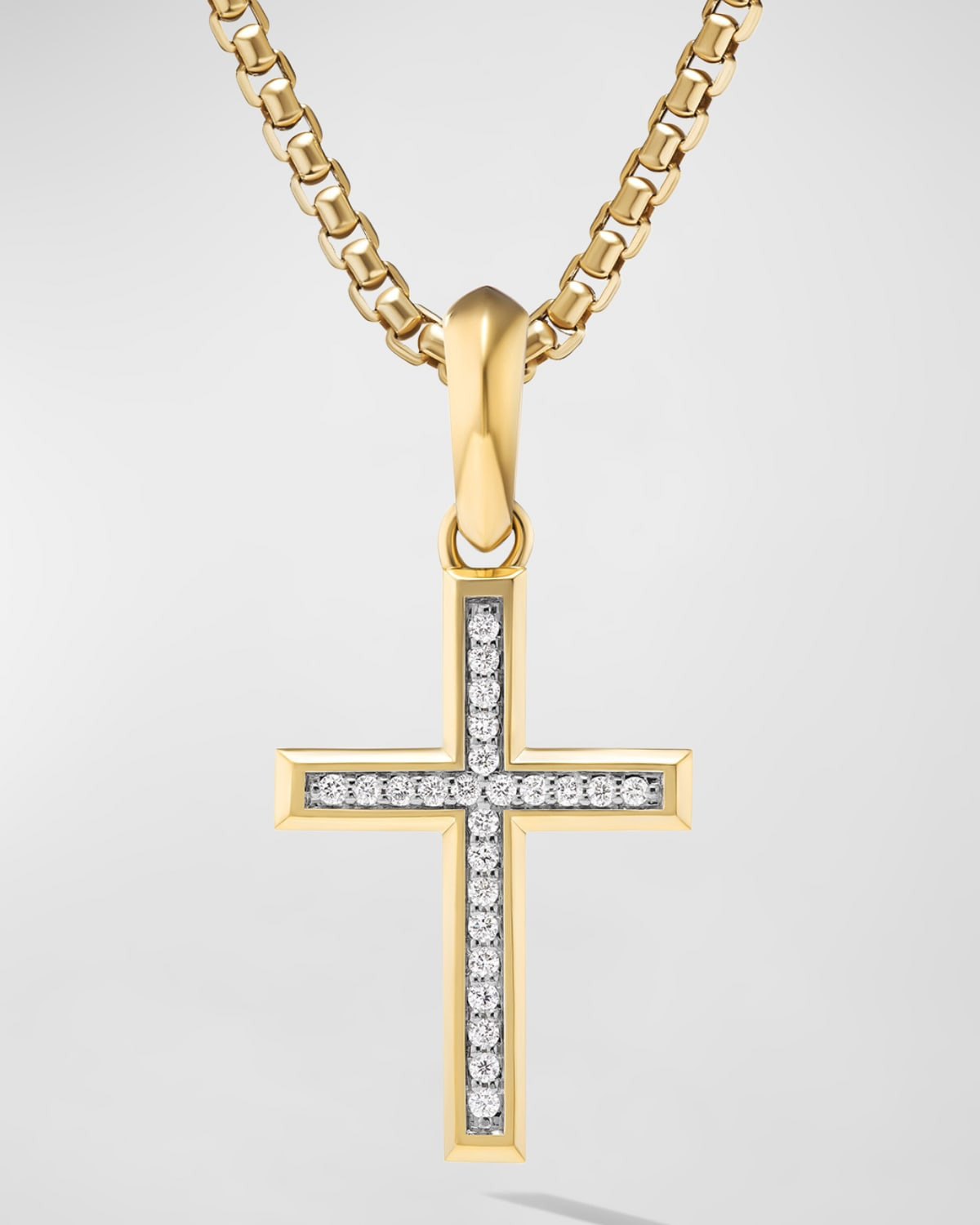 - 18-karat yellow gold - Pave-set diamonds, 0.16 total carat weight - Cross, 24 x 16.6mm - Total length, 34.6mm - Cross only; chain not included - Imported - Care Instructions: - Use the provided polishing cloth to gently wipe this item clean, then remove any remaining tarnish with mild diluted soap. Rinse with warm water, dry with a clean towel and store it in its jewelry pouch. - Please note: - Styles featuring meteorite should not be exposed to water.