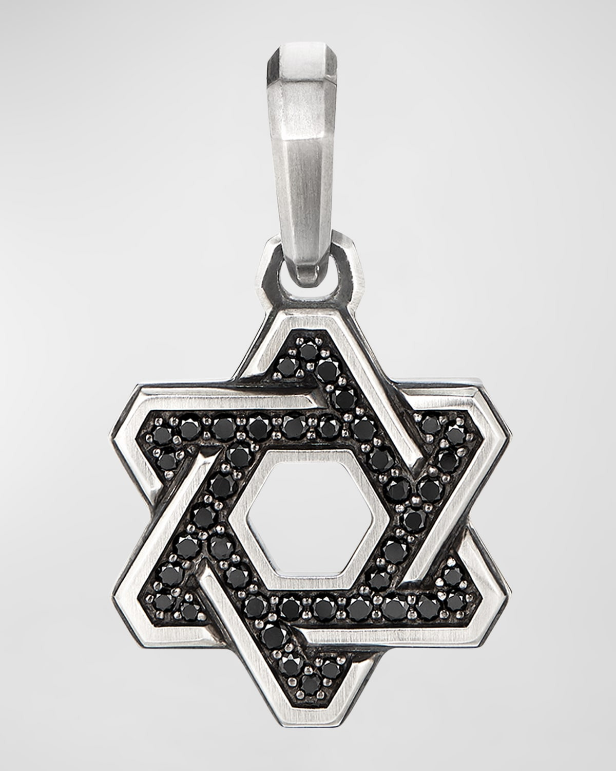 - David Yurman Star of David enhancer from the Deco collection. - Sterling silver. - Approx. 0.6"W (17mm). - Imported. - Please note: - pendant only; chain sold separately. - Shop David Yurman Men's Necklaces & Chains - Care Instructions: - Use the provided polishing cloth to gently wipe this item clean, then remove any remaining tarnish with mild diluted soap. Rinse with warm water, dry with a clean towel and store it in its jewelry pouch. - Please note: - Styles featuring meteorite should not be exposed to water.