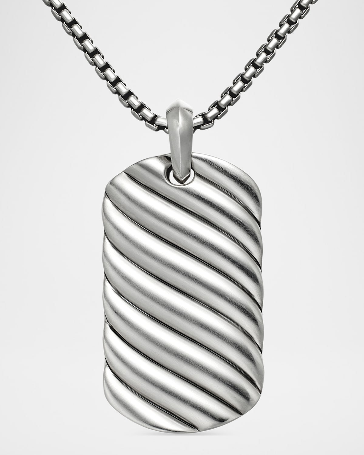 Men's Sculpted Cable Tag Pendant in Silver, 42mm