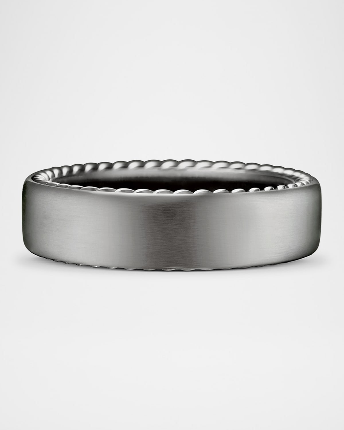 - David Yurman band ring from Streamline collection. - Approx. 0.2"W (6mm). - Gray titanium/sterling silver. - Imported. - Care Instructions: - Use the provided polishing cloth to gently wipe this item clean, then remove any remaining tarnish with mild diluted soap. Rinse with warm water, dry with a clean towel and store it in its jewelry pouch. - Please note: - Styles featuring meteorite should not be exposed to water.
