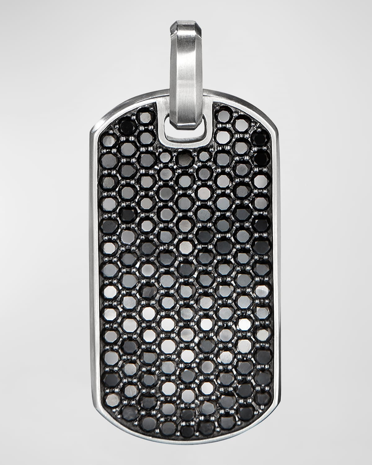 - David Yurman dog tag from the Streamline%26reg; Collection. - Pav%26#233; black diamonds, 3.57 total carat weight. - Sterling silver. - Tag, 35mm / approx. 1.4". - Please note: Chain sold separately. - Imported. - Shop David Yurman Men's Necklaces & Chains - Care Instructions: - Use the provided polishing cloth to gently wipe this item clean, then remove any remaining tarnish with mild diluted soap. Rinse with warm water, dry with a clean towel and store it in its jewelry pouch. - Please note: - Styles featuring meteorite should not be exposed to water.