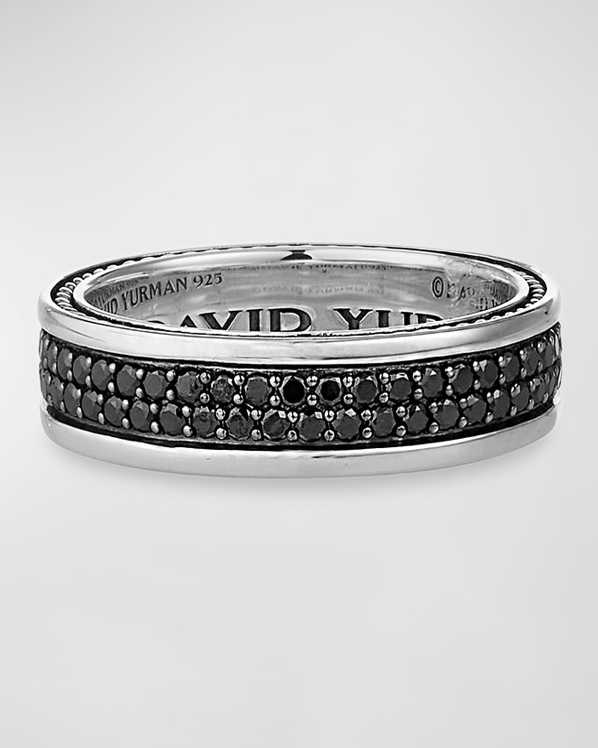 Men's Streamline Two-Row Band Ring with Black Diamonds in Silver, 6.5mm