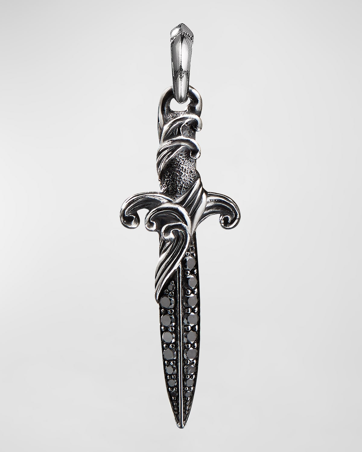 - David Yurman men's dagger pendant/enhancer. - Pave black diamonds, 0.45 total carat weight. - Engraved Sterling silver. - Pendant compatible with chains up to 2.7mm wide. - Amulet, 44 x 16mm. - Made in USA. - Please note: - Amulet only; chain sold separately. - Shop David Yurman Men's Necklaces & Chains - Care Instructions: - Use the provided polishing cloth to gently wipe this item clean, then remove any remaining tarnish with mild diluted soap. Rinse with warm water, dry with a clean towel and store it in its jewelry pouch. - Please note: - Styles featuring meteorite should not be exposed to water.