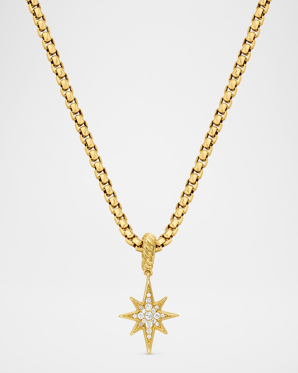 - David Yurman starburst charm. - 18-karat yellow gold hardware. - North star with diamond pave. - 0.10 total diamond carat weight. - Charm only; chain not included. - Approx. 15mm. - Imported.