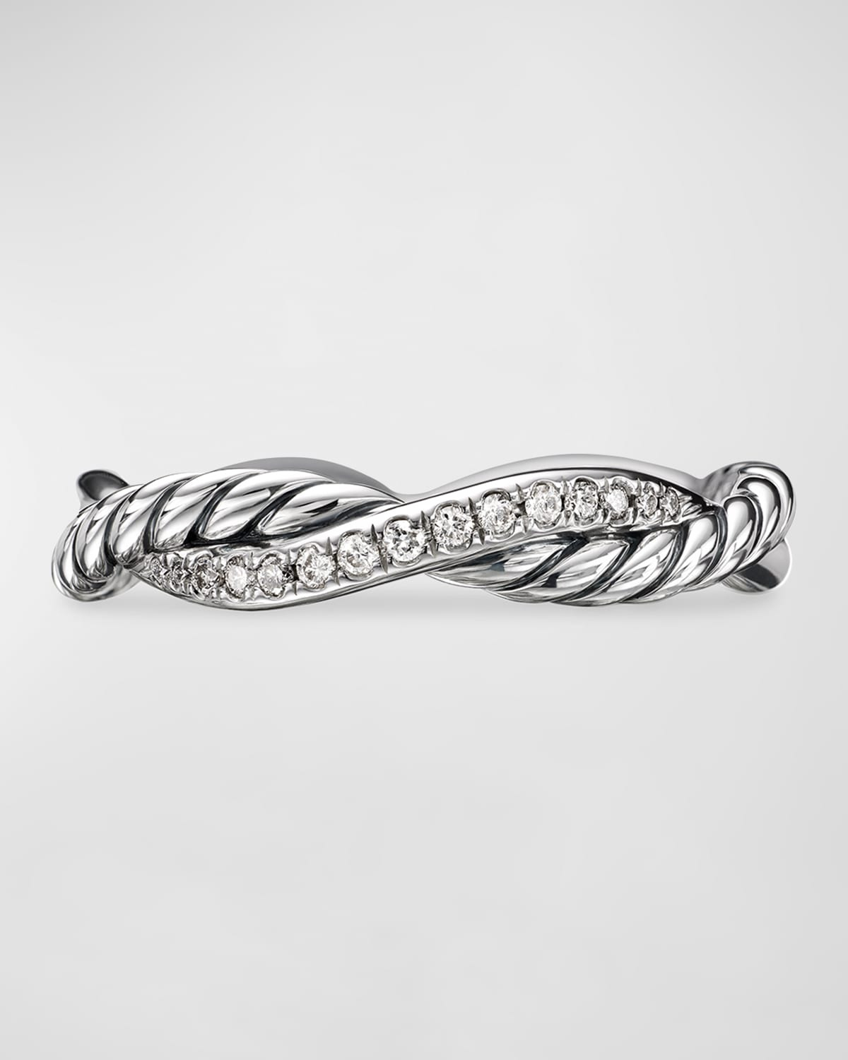 David Yurman twisted ring. Sterling silver with diamonds. 0.07 total diamond carat weight. Approx. 4mm. Imported.