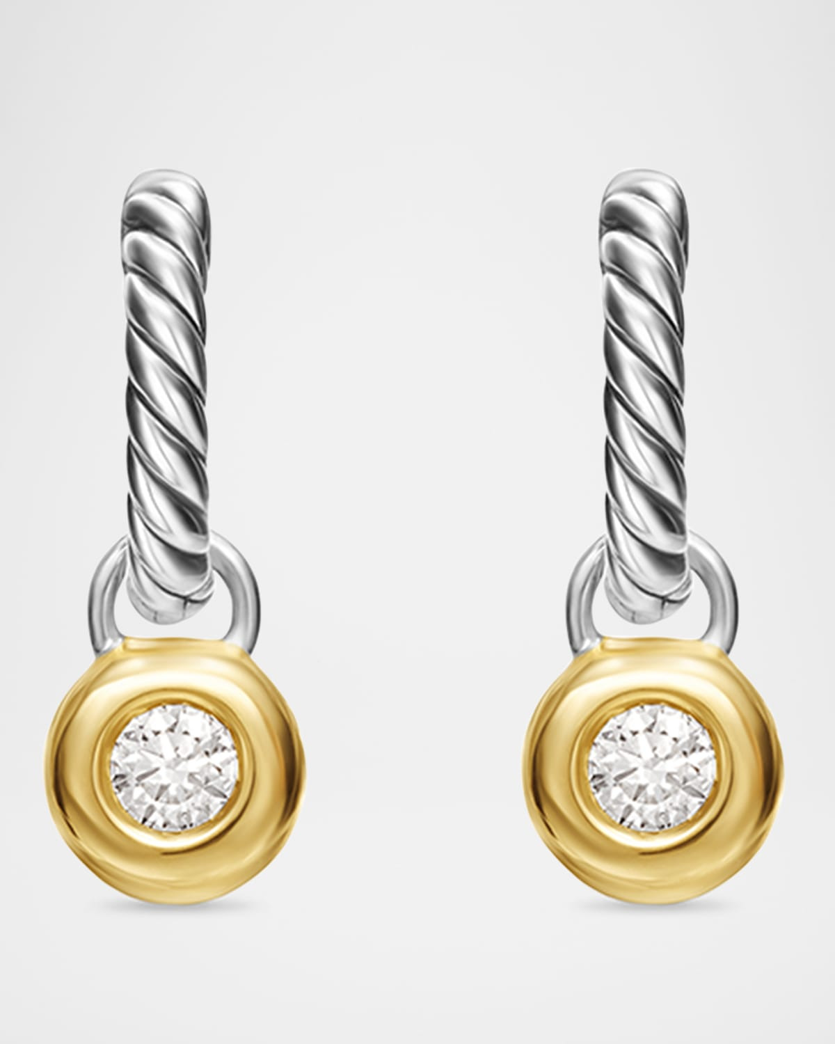 Petite Modern Cable Huggie Drop Earrings with Diamonds in Silver with 18K Gold