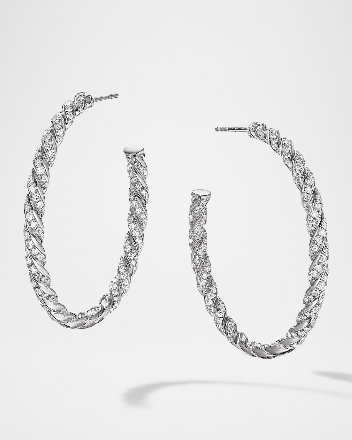 Sculpted Cable Flex Hoop Earrings with Diamonds in 18K White Gold, 1.75"