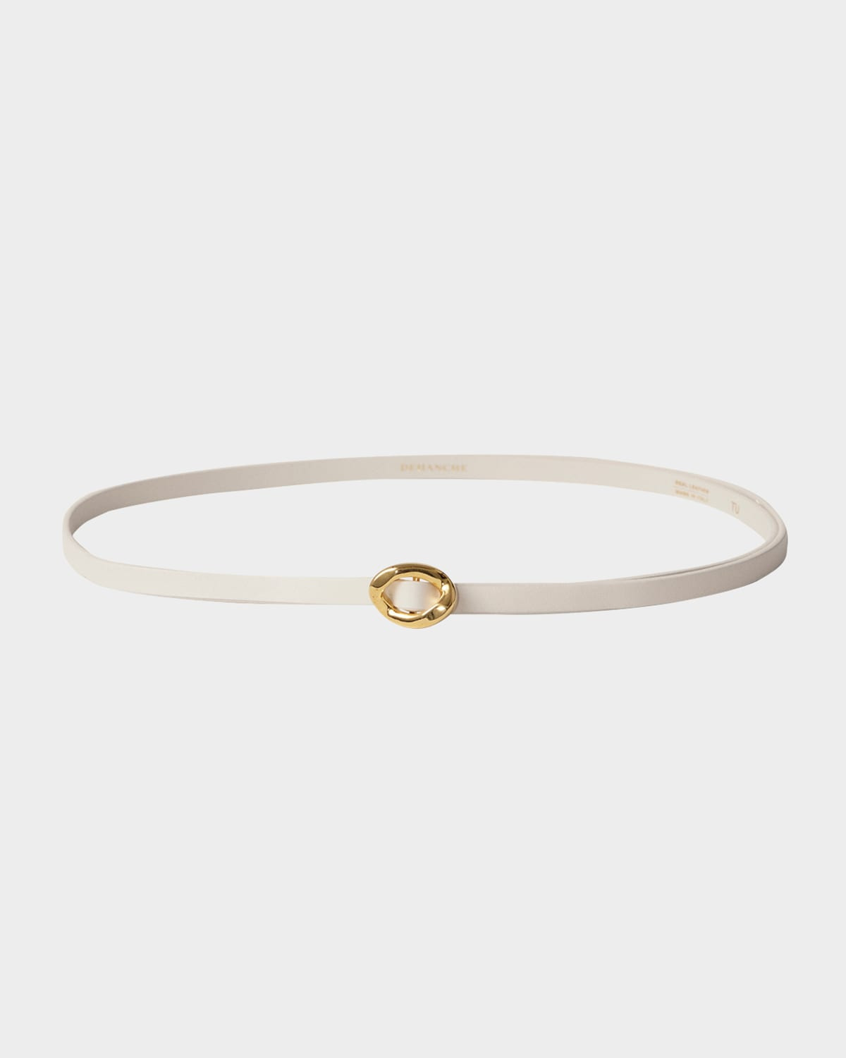 - Dehanche "Orbite" skinny leather belt - Approx. 0.8"W - Goldtone buckle closure - Cut to size - Leather/zamak - Spot clean - Made in Italy