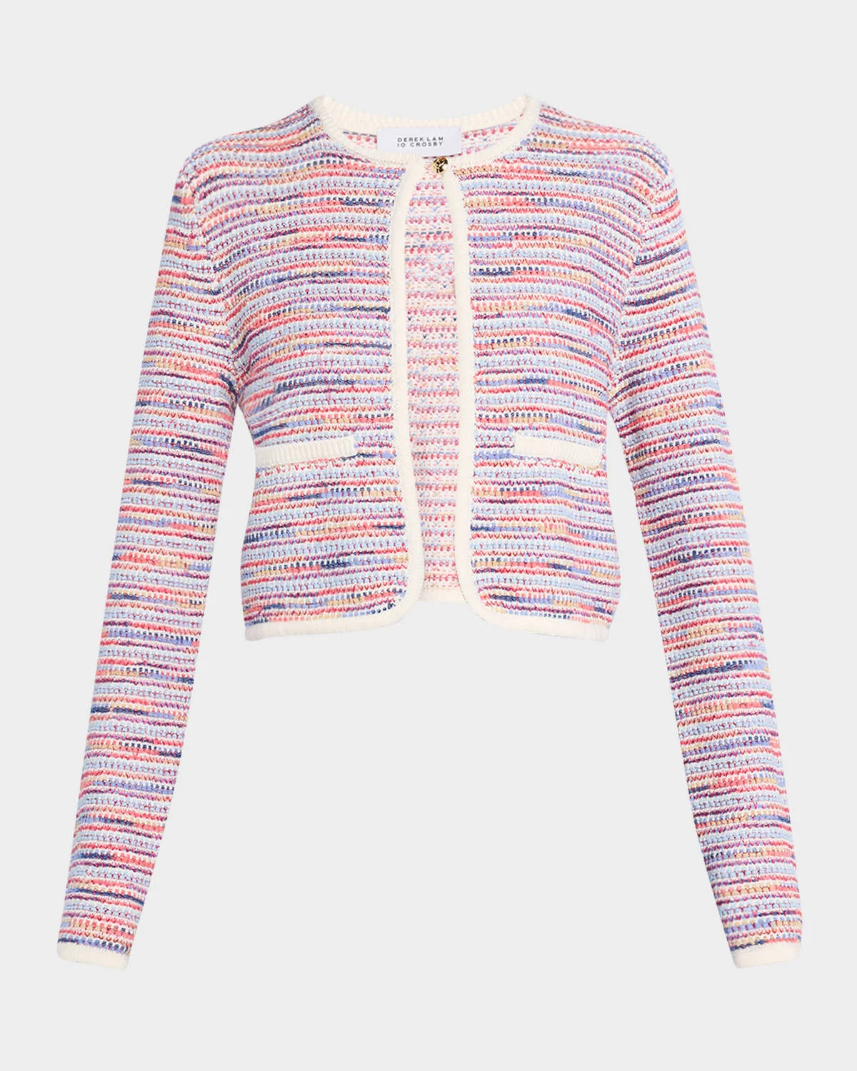 - Derek Lam 10 Crosby "Findley" knit space-dyed cardigan with contrast trim - Round neckline - Long sleeves; approx. 31.5"L - Welt pockets - Shrunken fit - Hem sits at the hip - Front hook closure - Polyester/acrylic/nylon/polyamide - Dry clean - Imported