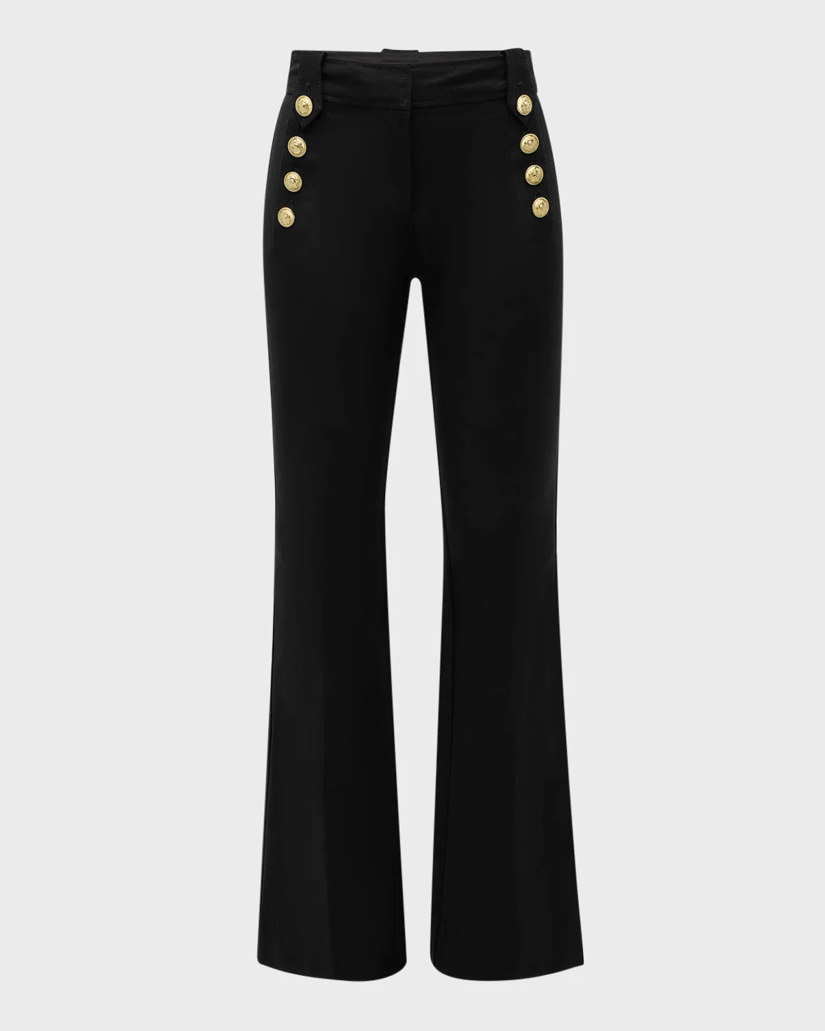 Derek Lam 10 Crosby trousers with sailor buttons.Mid-rise; concealed fly.Slim fit through thighs.Flared from knees.Cotton/spandex.Imported.Size Note: • Model Height: 5 & apos;11"/ waist 24"/ hips 34"/ bust 32" • Model is wearing size 2 Size Note:Item runs small, consider ordering a size up.