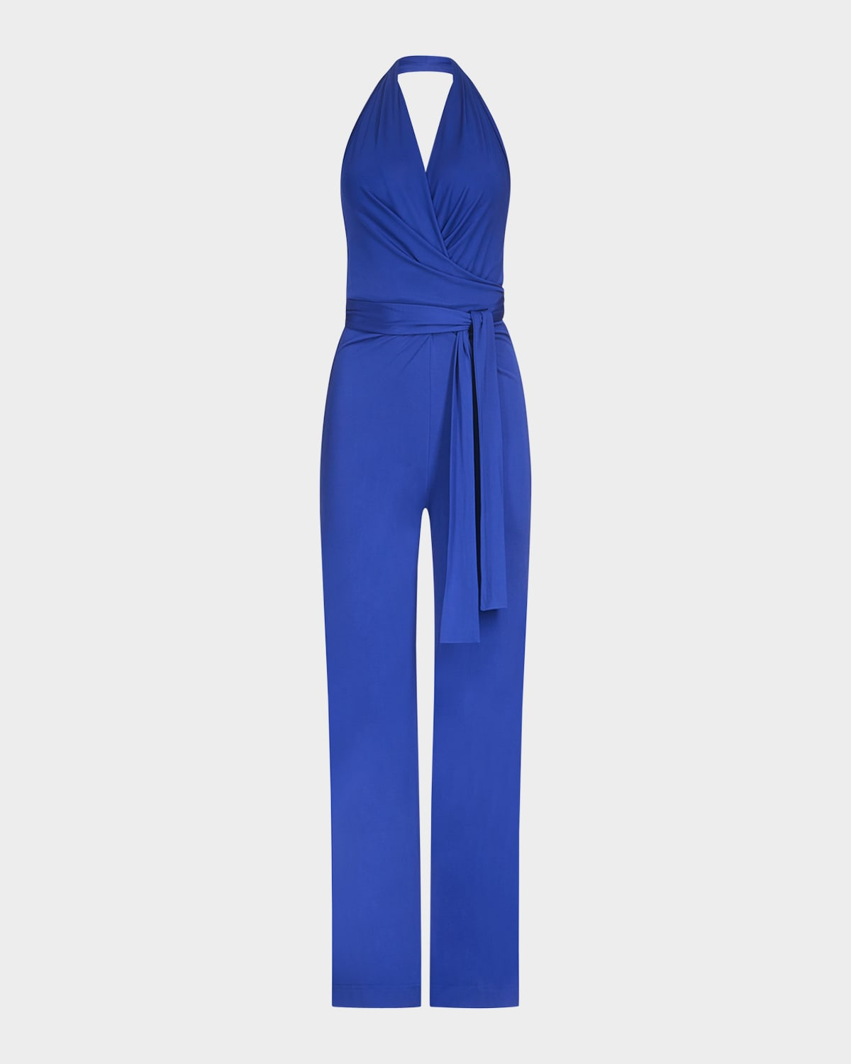 Delia Deep V-Neck Jersey Halter Jumpsuit