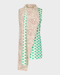 The Diane von Furstenberg x Henry Zankov "Mulberry" top combines classic polka dots with sunburst dots, the exaggerated front drape adding visual intrigue and fluid movement to the piece The capsule collaboration is a harmony between DVF's legendary prints and Zankov's distinctive visual language Mock neckline Sleeveless Relaxed fit Keyhole button back Pullover style Silk/spandex Imported