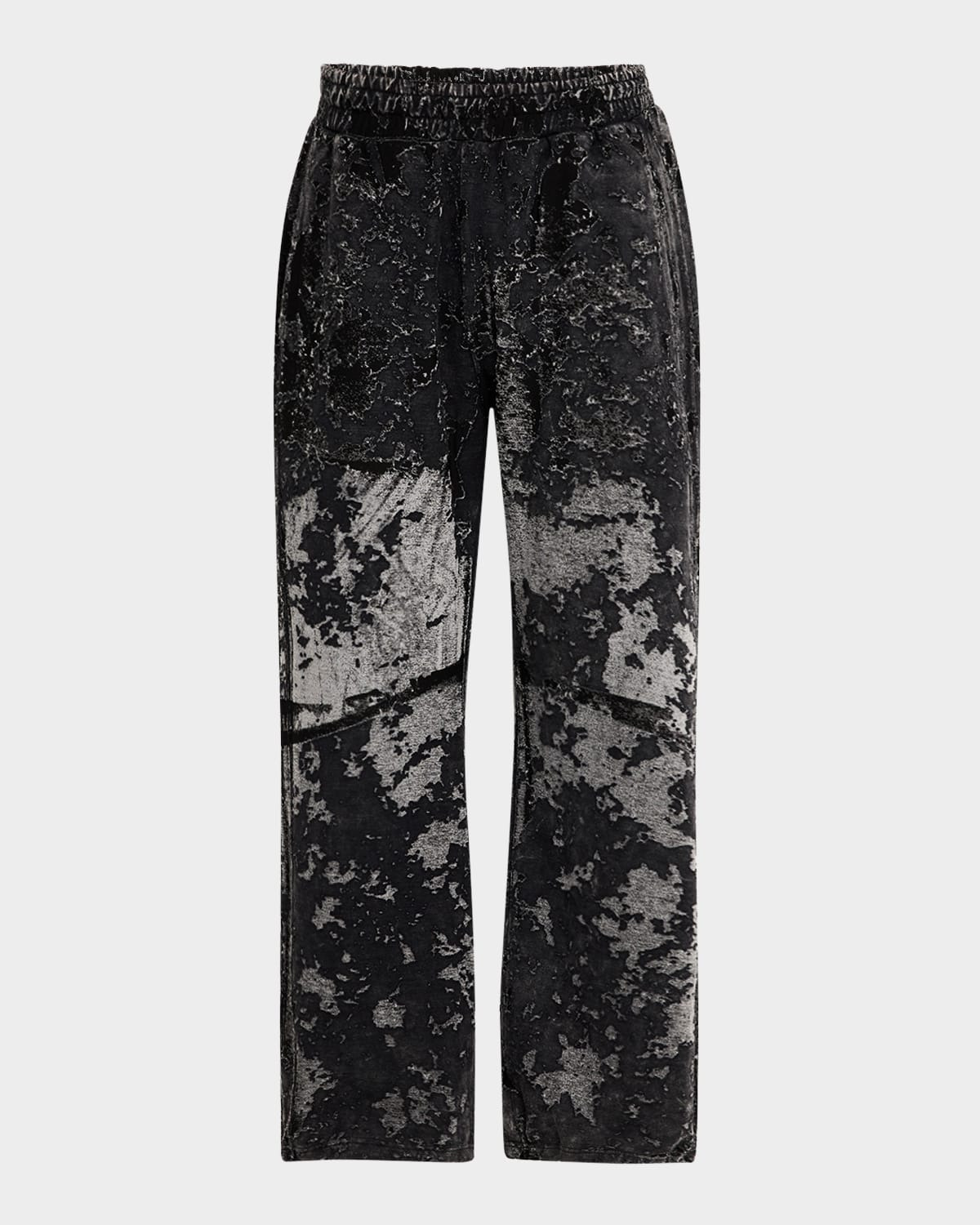 - Diesel sweatpants with devore camouflage motif - Elasticized waist - Side slip pockets - Back patch pockets - Full length - Relaxed legs - Pull-on style - Cotton/polyester - Spot clean - Made in Bulgaria - Model is 6'1"/185cm.