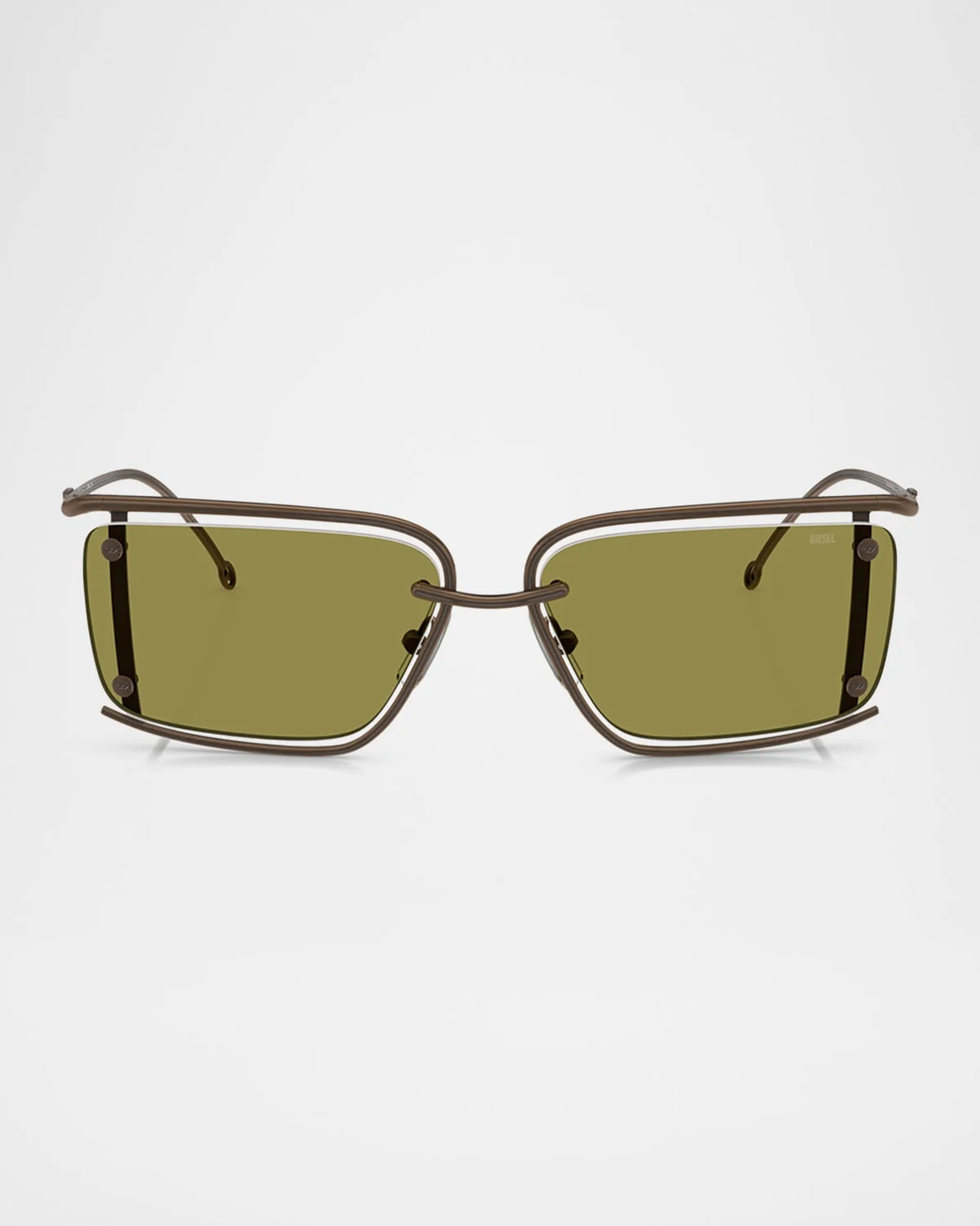 - D-gies is a fusion of lightweight shapes and solid structures. Provocatively modern and fearlessly bold, this collection celebrates diesel’s experimental roots with metal frames and floating lenses. A fresh approach to eyewear featuring unexpected details and a distinctive look. Lightweight yet strong, these frames are a rebellious interpretation of 90s low lens style. The rectangular floating lens exposes the metal structure, complete with industrial rivets and a d logo on the temple. An ultra-modern look with an inclusive aesthetic. A double wire metal frame with color-accent bevels in an eclectic palette of shiny silver, matte black, shiny blue, shiny gunmetal or shiny antique copper. Slightly wrapped rectangular lenses available in mirror grey, dark grey, mirror light blue silver or green. Dl1002 features a shiny antique copper color on a rectangular frame with green lenses. each pair of sunglasses come with a cleaning cloth and case to clean and protect your sunglasses from scratches and damage. To protect your eyes from harmful uv rays, these sunglasses include lenses that are coated with 100% uv protection. - Diesel rectangle sunglasses in metal - Lens/bridge/temple (in mm): - 57-15-140 - Solid-color lenses - Logo on the left lens - Adjustable nose pads - Logo on the temples - Thin arms - Metal - Spot clean - 100% UVA/UVB protection - Made in Italy - Proposition 65 warning for California residents