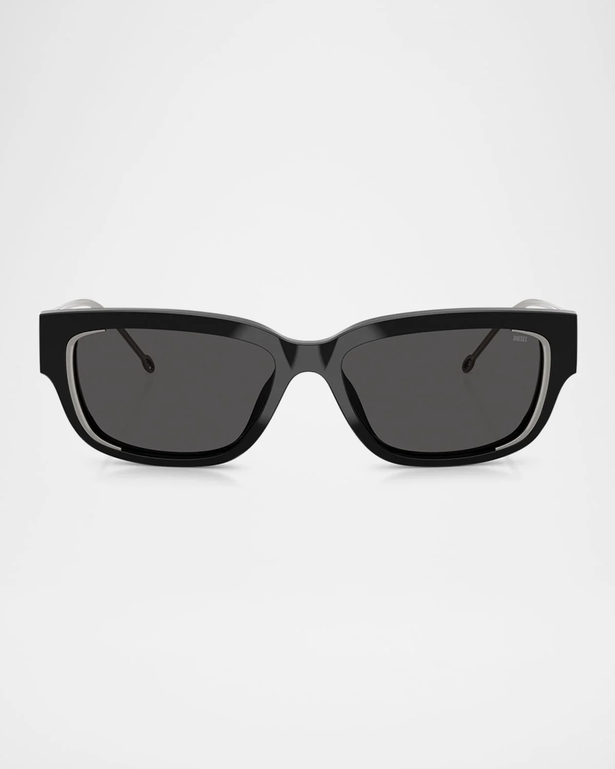 - Slick shapes and streetstyle swagger dominate the dynamic geck-d story. Channeling a techno pop aesthetic, these frames blend ergonomic construction with diesel dna for a one-of-a-kind vibe. The perfect accessory for transitioning any look from day to night. this ultra-wearable style is a mix of essential lines and diesel's industrial dna. Smooth acetate creates the rectangular front, while metal brackets amplify lenses with a 3d-effect. An acetate logo plaque adds a geometric edge to double wire temples in shiny gunmetal, shiny silver or brushed gunmetal. Rectangular acetate frames with a universal fit are available in white mily, shiny black, shiny dark havana, shiny smoke havana or shiny grey tortoise. Colorways for the genderless rectangular lenses include dark grey, mirror grey silver, brown, dark violet emerald iridium, or mirror hiper red. Dl2002mu features a shiny black color on a rectangular frame with dark grey lenses. each pair of sunglasses come with a cleaning cloth and case to clean and protect your sunglasses from scratches and damage. To protect your eyes from harmful uv rays, these sunglasses include lenses that are coated with 100% uv protection. - Diesel rectangle sunglasses in acetate - Lens/bridge/temple (in mm): - 56-16-140 - Solid-color lenses - Logo on the left lens - Saddle nose bridge - Logo on the temples - Thin arms - Acetate - Spot clean - 100% UVA/UVB protection - Made in Italy - Proposition 65 warning for California residents
