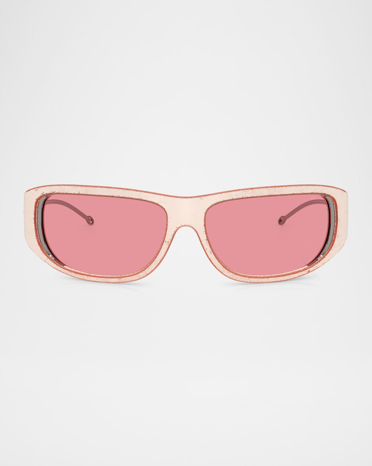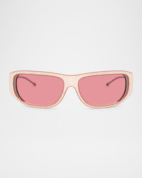 - Slick shapes and streetstyle swagger dominate the dynamic geck-d story. Channeling a techno pop aesthetic, these frames blend ergonomic construction with diesel dna for a one-of-a-kind vibe. The perfect accessory for transitioning any look from day to night. an aerodynamic wraparound style with an urban active feel. From the injected front to the double wire metal temples, these frames have a quintessential diesel look. Metal brackets on the outer lenses and the d logo on the temples and tips further amplify the streetwear vibe. this universal fit frame comes in shiny black, shiny iridescent, rusty orange/beige, shony black, havana, havana rossa or shiny opal grey. Wrapped lenses are available in mirror grey silver, bubble, mirror pink silver, dark grey, light brown, mirror green or mirror grey. Dl3001 features a rusty orange/beige color on a oval frame with pink mir silver lenses. each pair of sunglasses come with a cleaning cloth and case to clean and protect your sunglasses from scratches and damage. To protect your eyes from harmful uv rays, these sunglasses include lenses that are coated with 100% uv protection. - Diesel oval sunglasses in plastic - Lens/bridge/temple (in mm): - 61-15-115 - Mirror lenses - Logo on the left lens - Saddle nose bridge - Logo on the temples - Thin arms - Plastic - Spot clean - 100% UVA/UVB protection - Imported - Proposition 65 warning for California residents