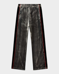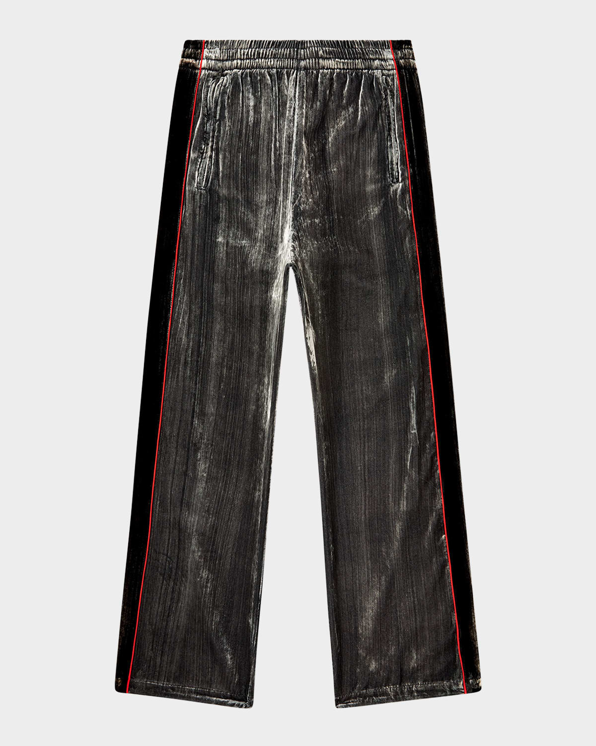 - Diesel tracksuit pants defined by a velvet-like finish with a streak effect - Contrast piped inserts - Regular rise - Side welt pockets - Back besom pocket - Relaxed fit through straight legs - Full length - Elasticized waistband - Viscose/nylon/polyamide - Hand wash - Imported