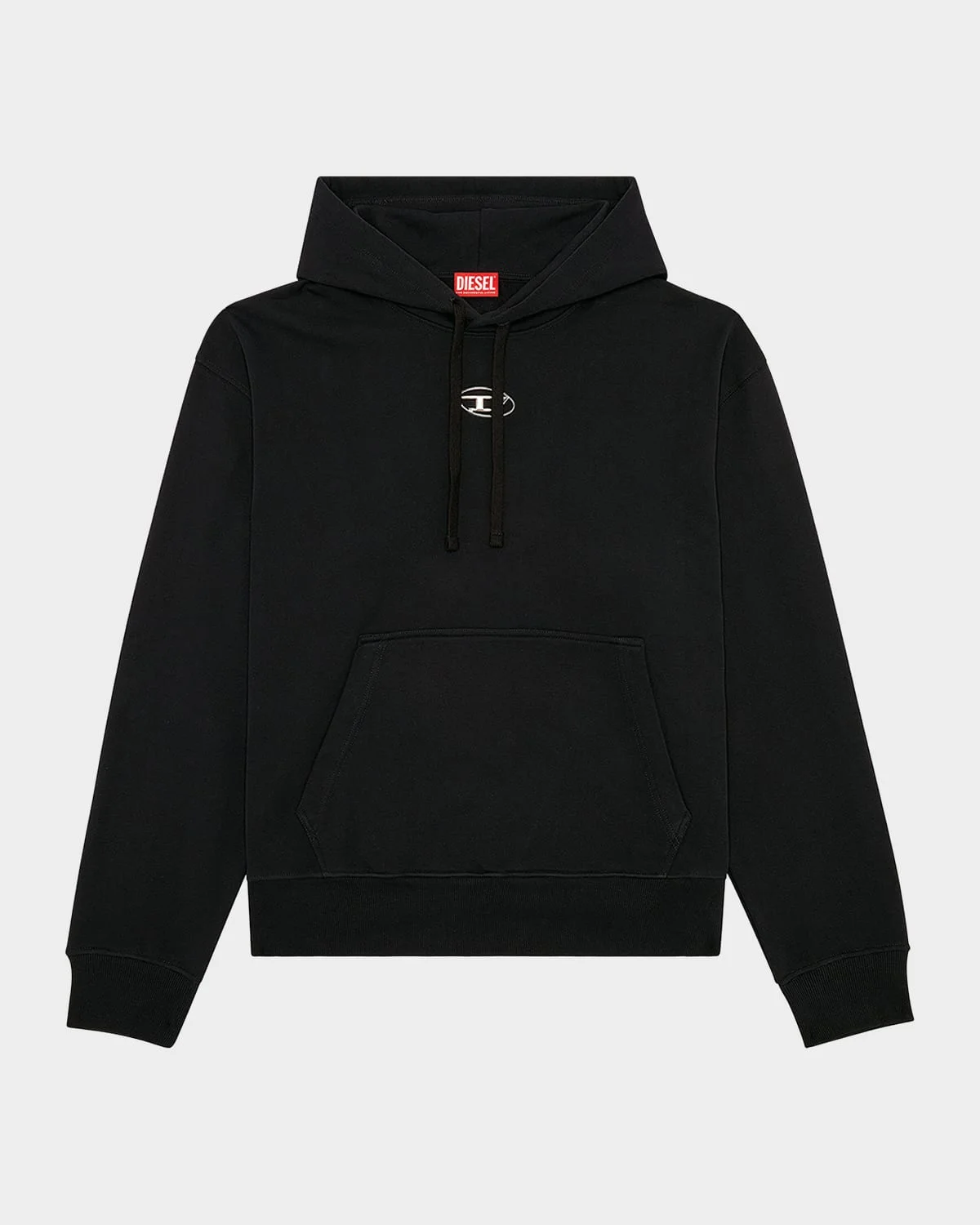 - Diesel "S-Macs-Hood-Od" sweatshirt in loopback cotton jersey is defined by an injection-moulded metallic 'oval D' chest logo - Hooded neckline; adjustable drawstrings - Dropped shoulders - Long sleeves - Front kangaroo pocket - Oversized fit - Banded cuffs and hem - Pullover style - Cotton - Machine wash cold - Made in Bulgaria - Model is 6'1"/185cm.