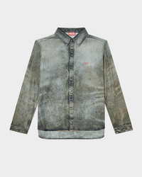 - Diesel button-down shirt in viscose with a fluid drape and a marbled denim effect - Printed D initial on the chest - Shirt collar - Button placket - Long sleeves - Single-button cuffs - Shirttail hem - Relaxed fit - Viscose - Hand wash - Imported