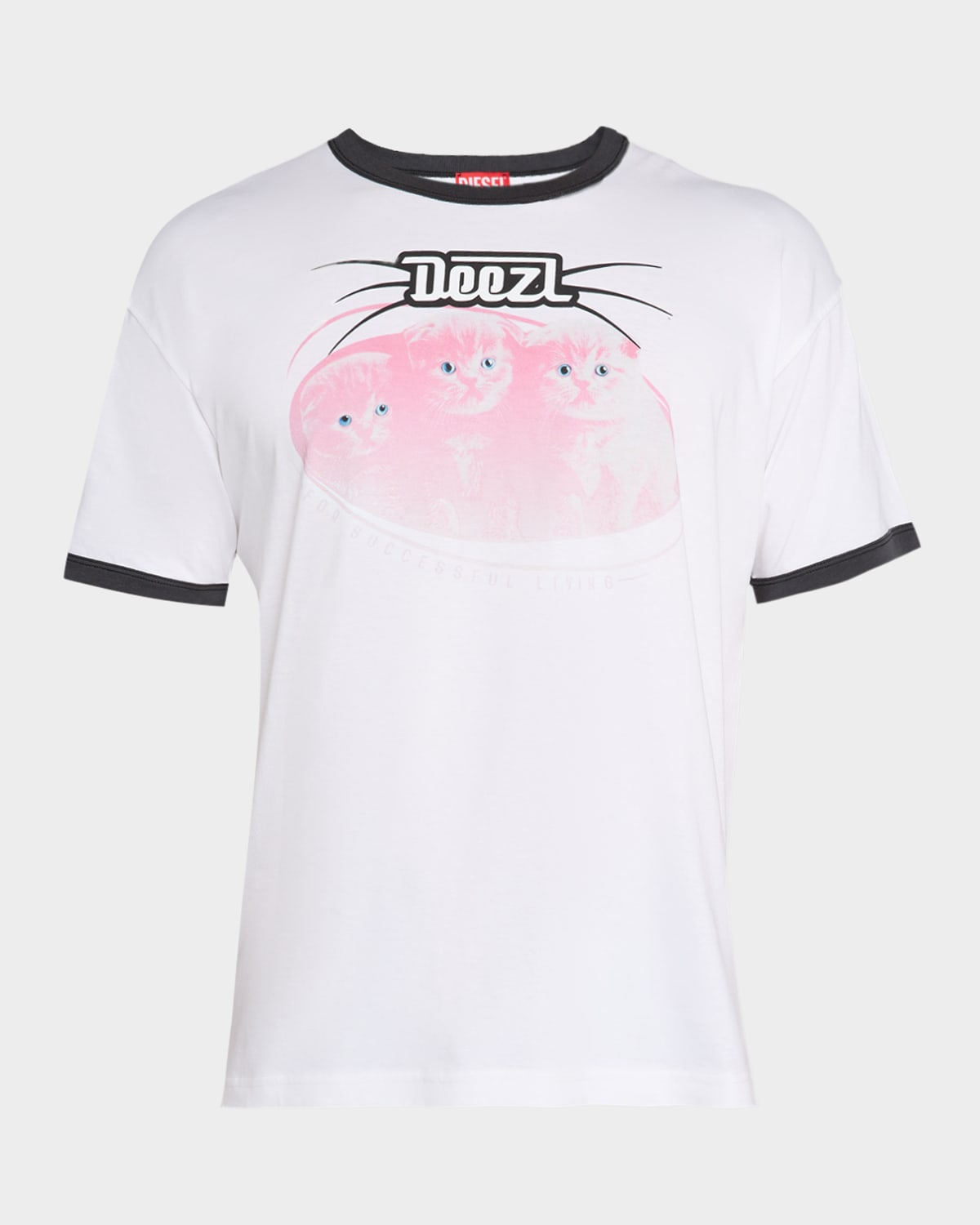 - Diesel T-shirt crafted from 100% organic cotton, grown using farming practices that support biodiversity and healthy ecosystems - Digital cat print on the front - Contrasting ribbed trim - Crew neckline - Short sleeves - Oval D embroidery on the left sleeve - Classic fit - Pullover style - Cotton - Machine wash cold - Made in Bulgaria