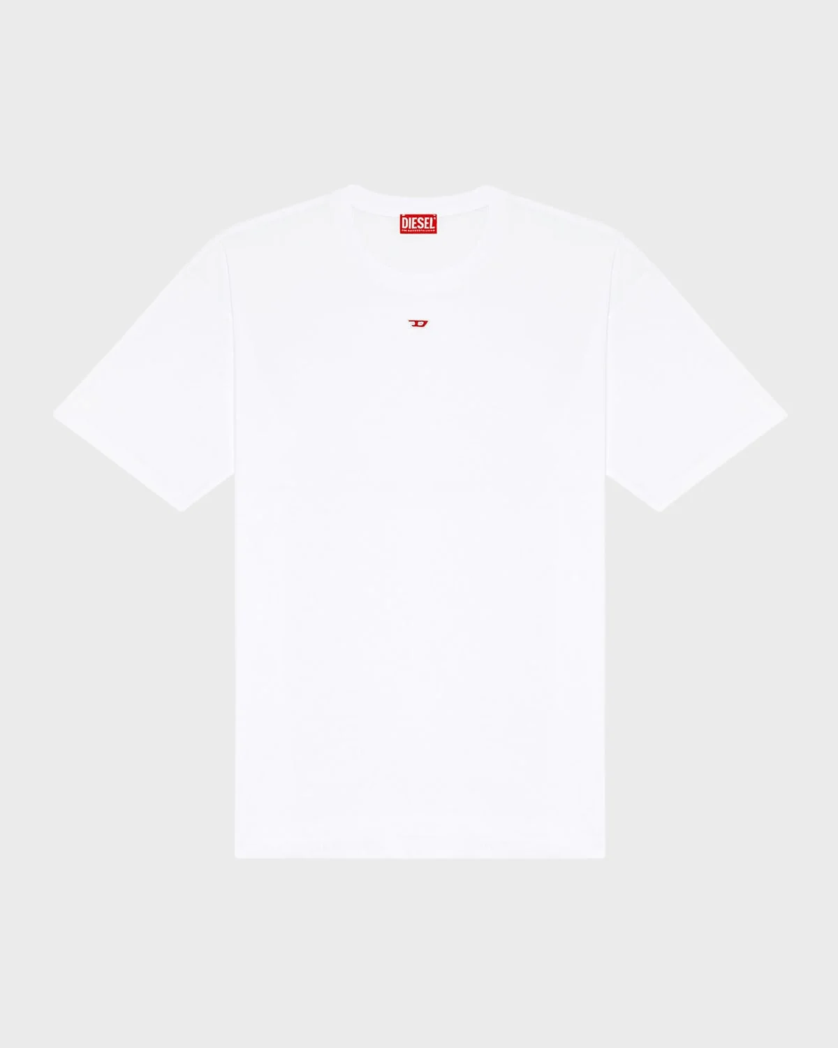 - Diesel T-shirt made from organic cotton jersey - Miniature embroidered D patch at chest - Crew neckline - Relaxed fit with dropped shoulders - Short sleeves - Pullover style - Machine wash cold, line dry - Imported - Model is 6'1"/185cm.