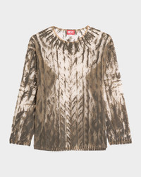 The Diesel "TAlly" Tshirt is crafted in flocked tulle, detailing a timeless cable weave motif From the FallWinter 2025 runway show collection Crew neckline Long sleeves Pullover style Relaxed fit Nylon/polyamide Hand wash Made in Bulgaria