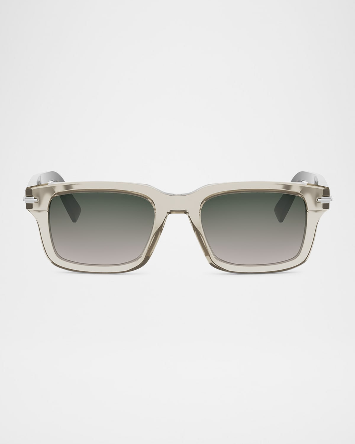 The "DiorBlackSuit S16I" sunglasses by DIOR stand out with a transparent acetate frame and rectangular silhouette to celebrate the House's tailoring spirit. Lens/bridge/temple (in mm): 5220145 Can be fit for prescription lenses Gradient lenses Saddle nose bridge with CD signature CD lasered logo on the metal hinge Tortoiseshelleffect acetate temples Metal Dior signature on the right temple interior Tapered arms Acetate Wipe clean 100% UVA/UVB protection Made in Italy