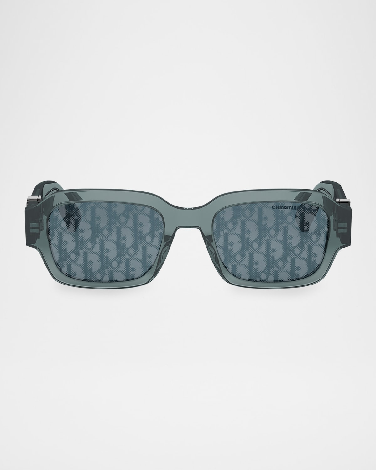 - DIOR rectangle sunglasses in acetate - Lens/bridge/temple (in mm): - 37.6-20-145 - Logo-patterned lenses - Left lens logo script - Saddle nose bridge - Metal dior oblique logo clipped on temples - Exposed metal corewire - Acetate - 100% UVA/UVB protection - Made in Italy - Proposition 65 warning for California residents