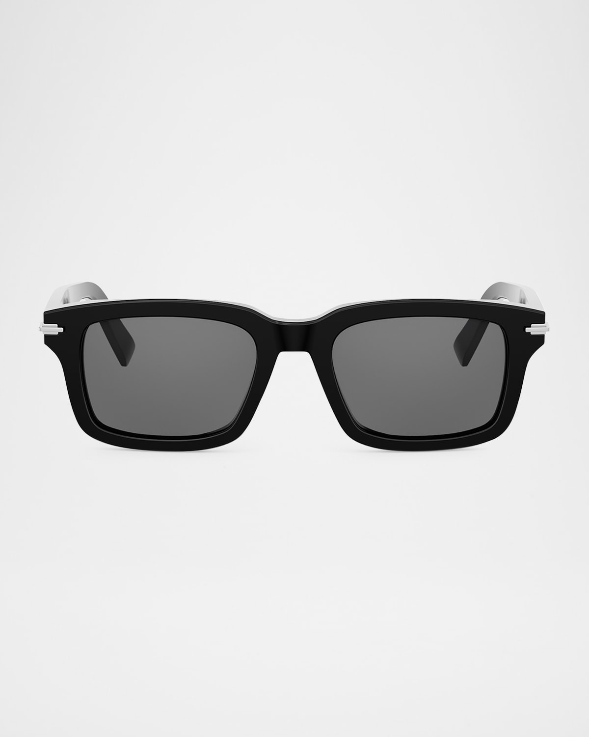 Crafted of sleek acetate, these rectangular sunglasses by DIOR are adorned with silvertone accents on the temples. Eye/bridge/temple (in mm): 5220145 Monochromatic lenses Saddle nose bridge CD laser logo on metal hinge 100% UVA/UVB protection Acetate Hand wash Made in Italy