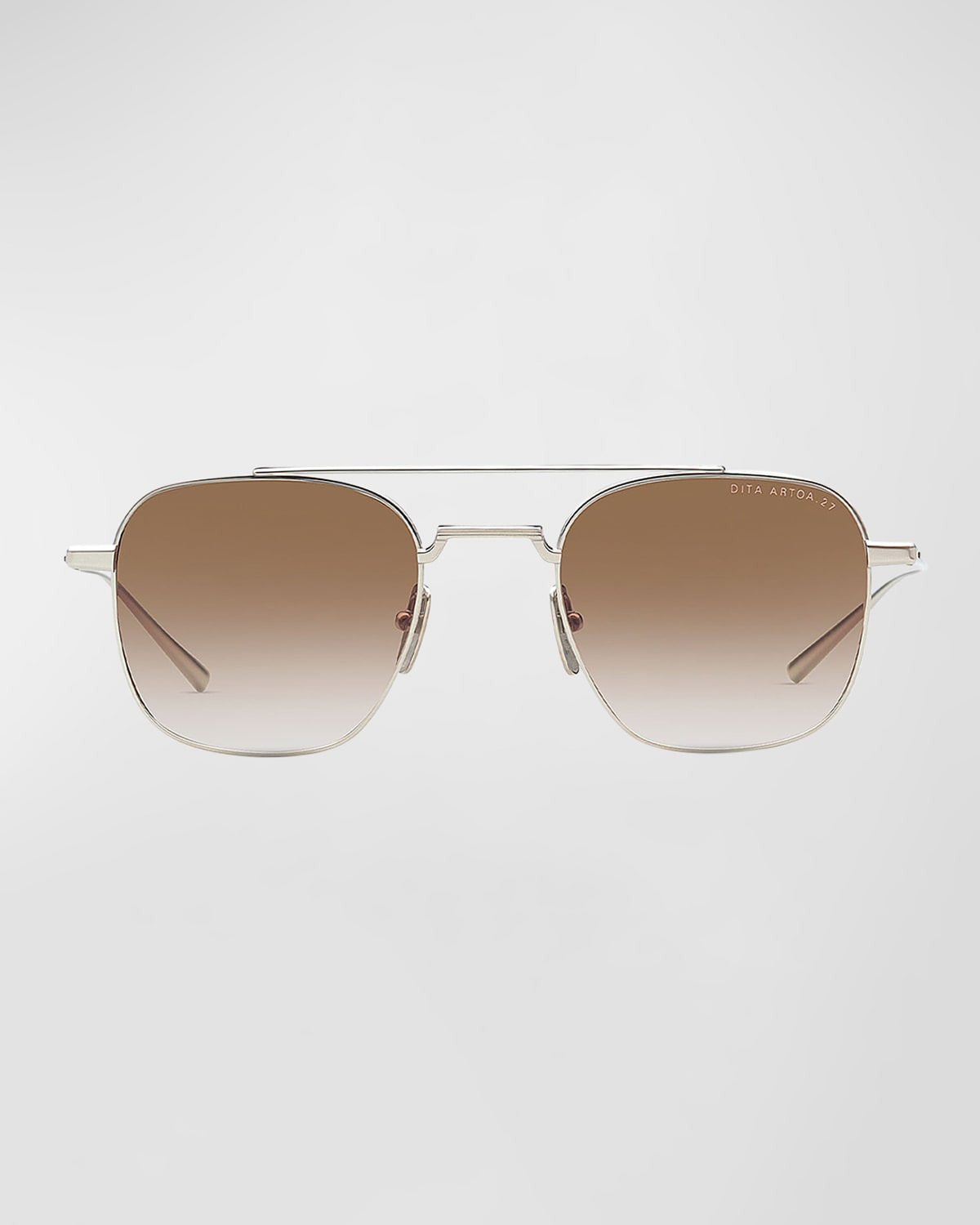 - Dita "Artoa.27" square-shaped aviator sunglasses in titanium - Lens/bridge/temple (in mm): 50-22-145 - Gradient lenses; logo on corner - Adjustable nose pads - Thin, tapered arms - Wipe clean - 100% UVA/UVB protection - Made in Japan - Proposition 65 warning for California residents