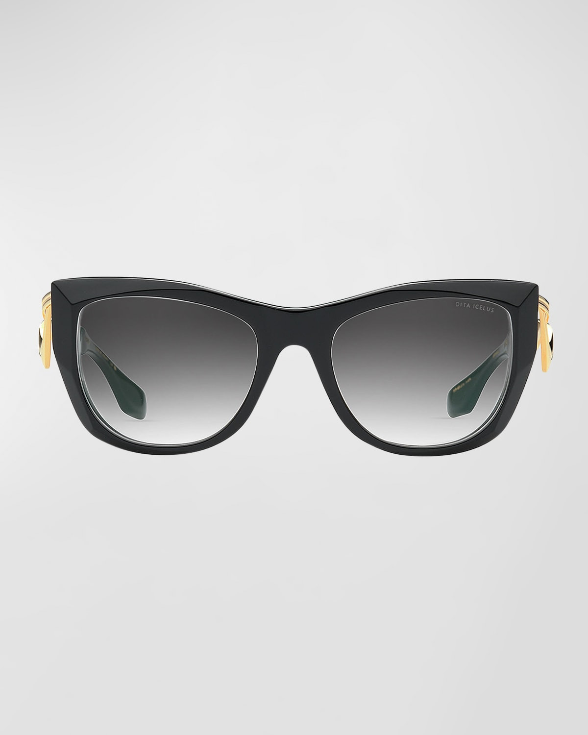 - Dita "Icelus" cat-eye sunglasses in acetate and titanium - Lens/bridge/temple (in mm): 55-21-145 - Gradient lenses; logo on corner - Saddle nose bridge - Sculptural adornment on temples - Thin, tapered arms - Wipe clean - 100% UVA/UVB protection - Made in Japan - Proposition 65 warning for California residents