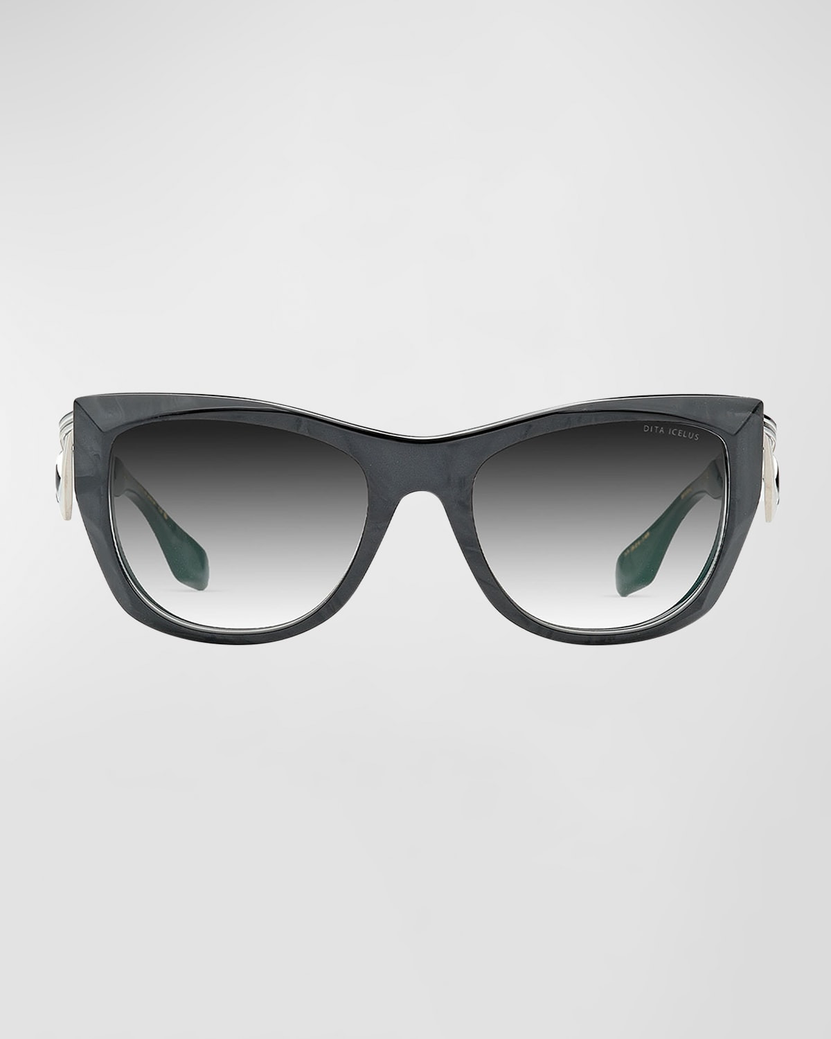 - Dita "Icelus" cat-eye sunglasses in acetate and titanium - Lens/bridge/temple (in mm): 55-21-145 - Gradient lenses; logo on corner - Saddle nose bridge - Sculptural adornment on temples - Thin, tapered arms - Wipe clean - 100% UVA/UVB protection - Made in Japan - Proposition 65 warning for California residents