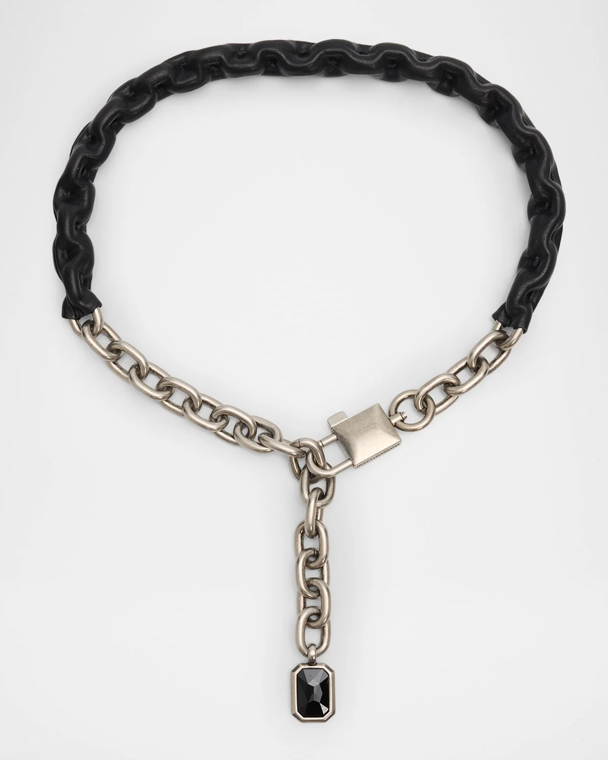 This Dolce & amp;Gabbana belt & nbsp;combines Miami palladium-plated brass and calfskin leather for an elegant look Approx. 0.59"H Logoed padlock buckle Brass/aluminum Made in Italy