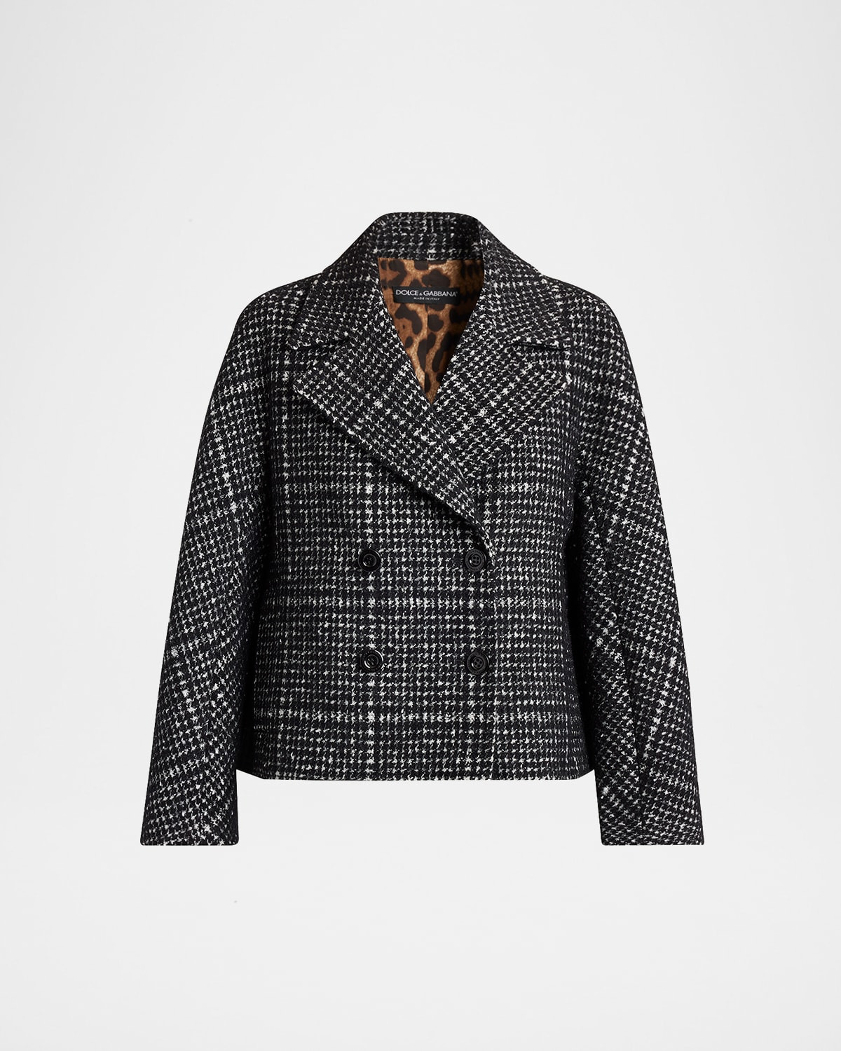 - Dolce&Gabbana jacket in check pied poule with an ocelot printed lining - Notch lapels; double-breasted front - Long sleeves - Straight fit - Hip length - Virgin wool/mohair/silk - Made in Italy